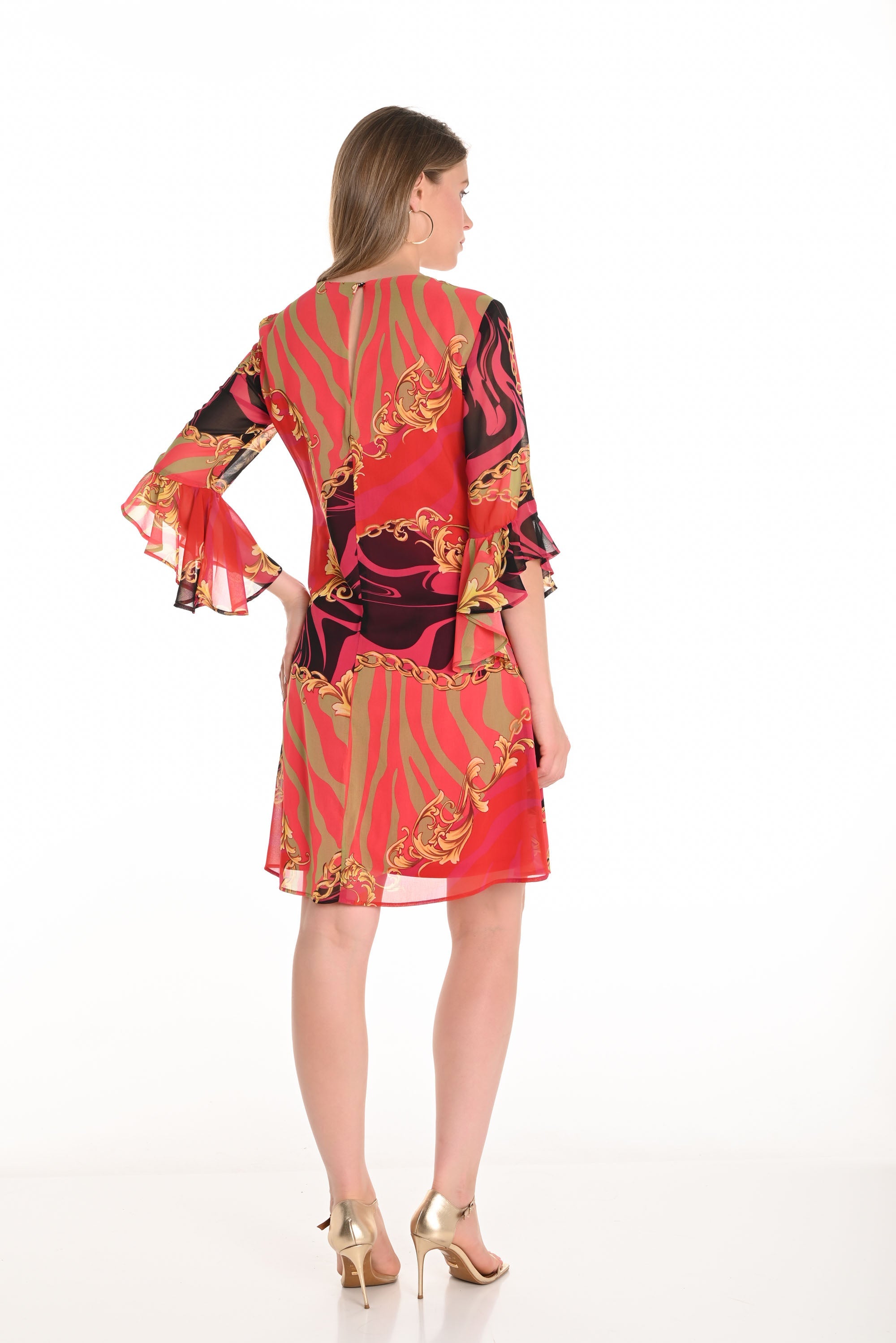 Frank Lyman Pink/Red Bell Sleeve A-Line Mini Dress Style 251217