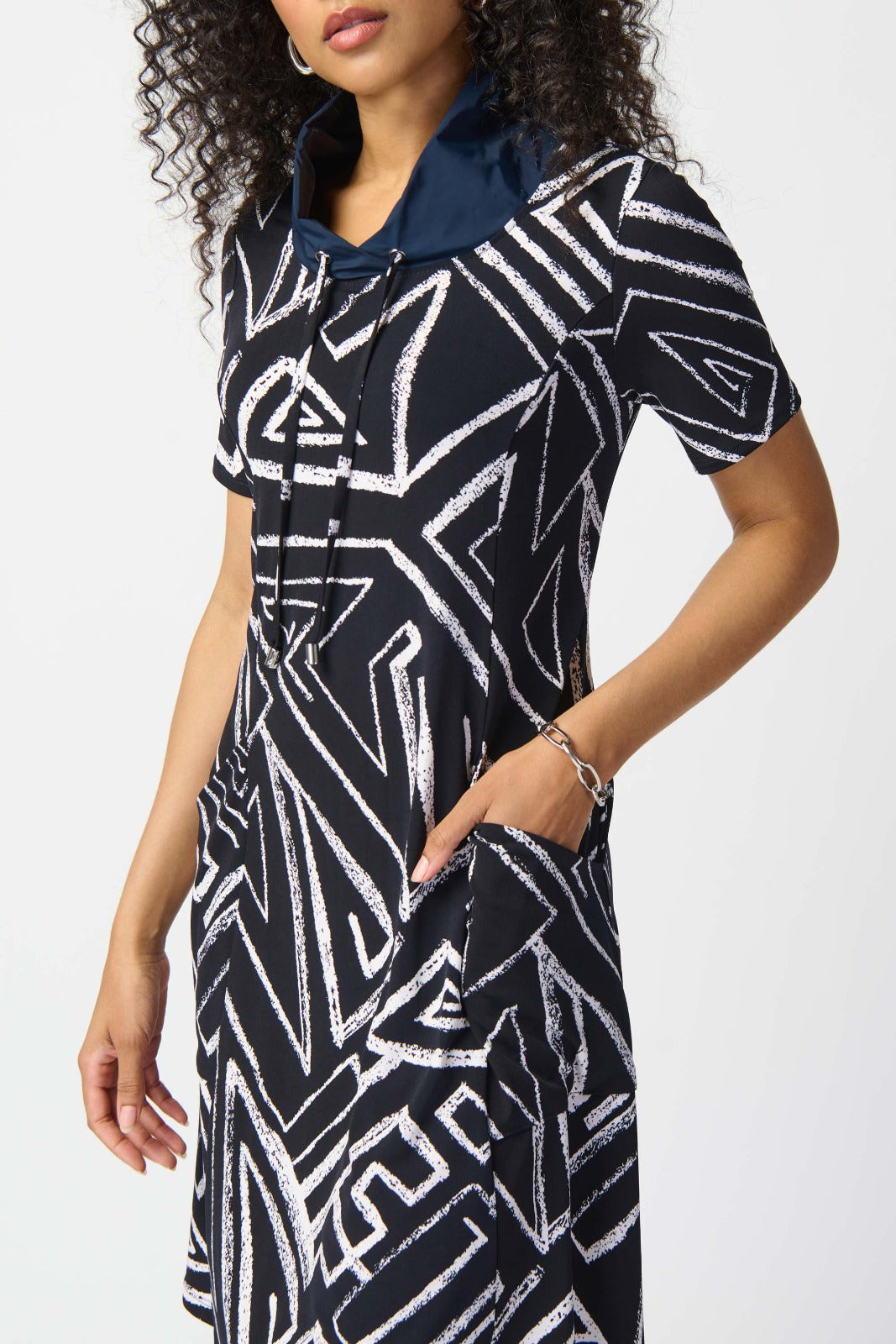 Joseph Ribkoff Midnight Blue/Vanilla Abstract Print A-Line Dress Style 241028
