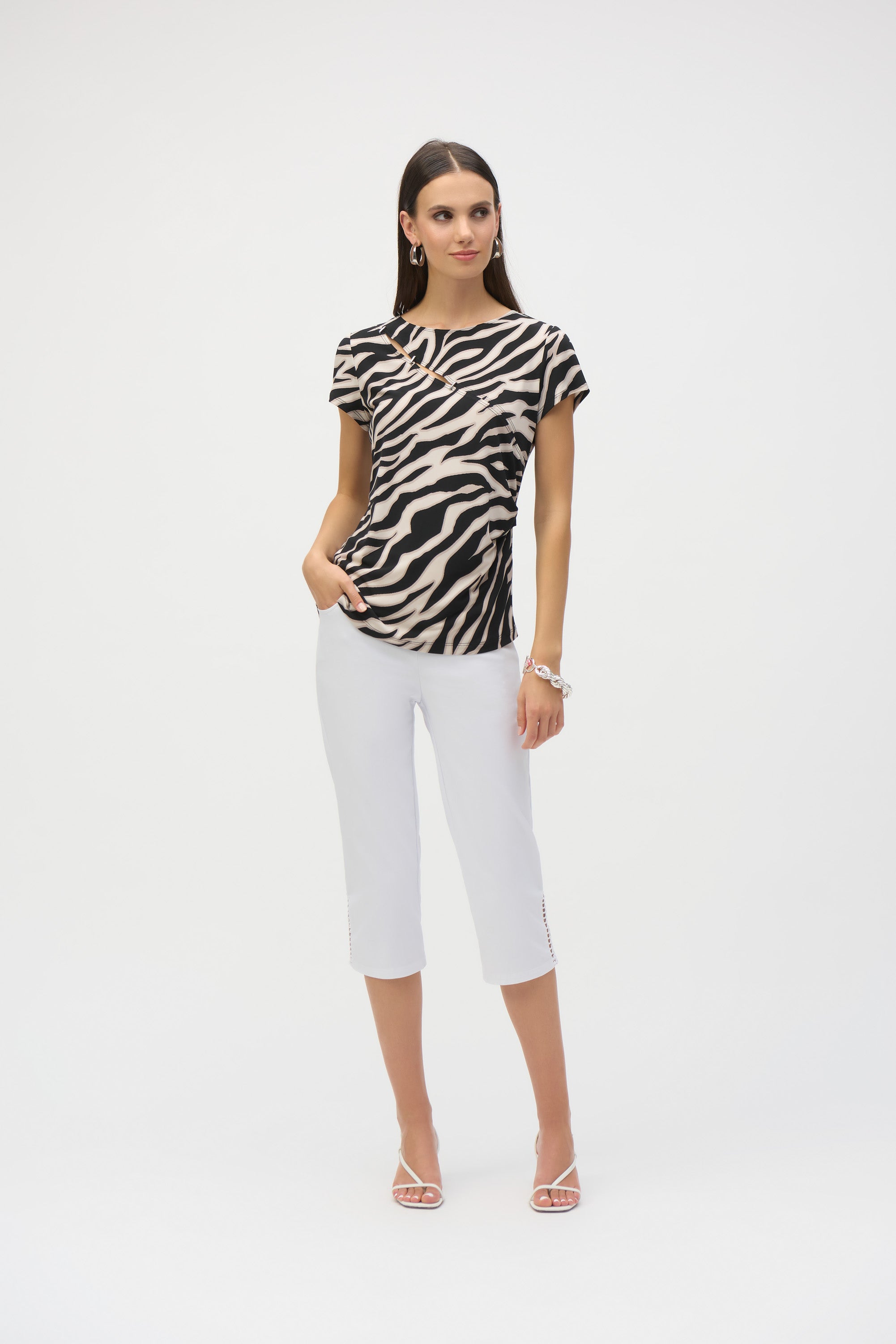 Joseph Ribkoff Beige/Black Animal Print Fitted Top Style 252125