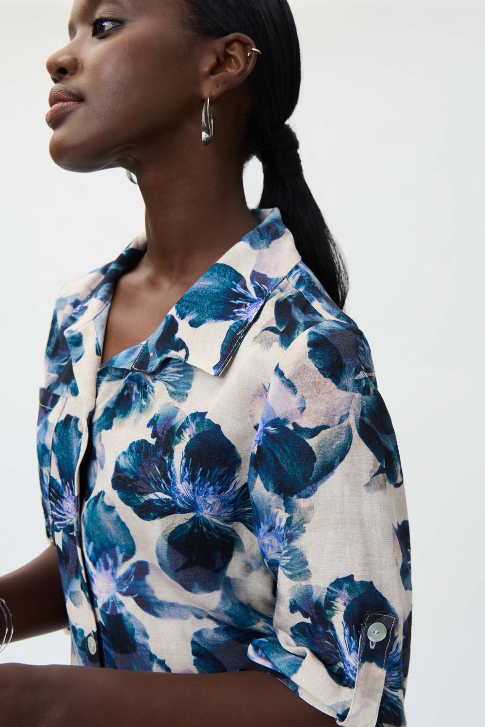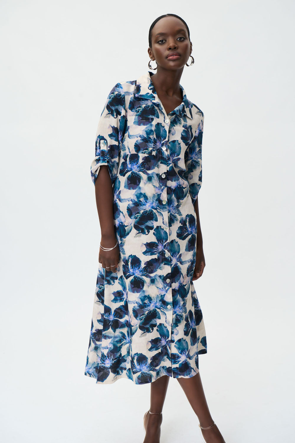 Joseph Ribkoff Beige/Multi Linen Hemmed Shirt Dress Style 232238