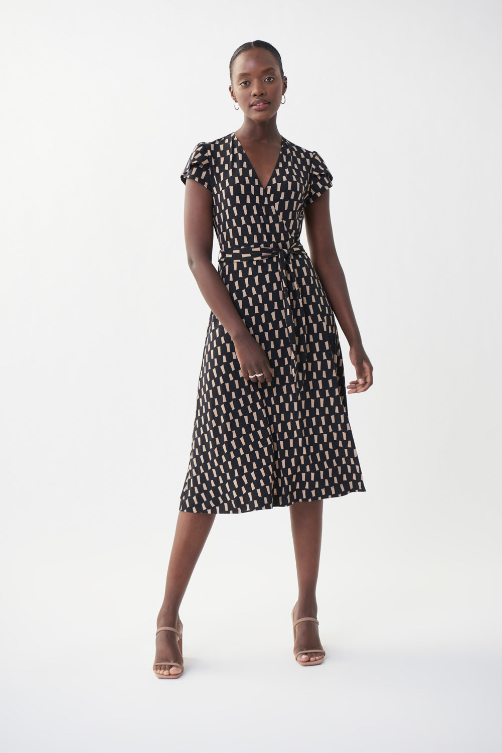 Joseph Ribkoff Black/Beige Wrap Front Dress Style 222202