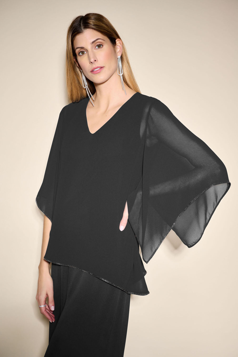 Joseph Ribkoff Black Chiffon V-Neck Top Style 233781