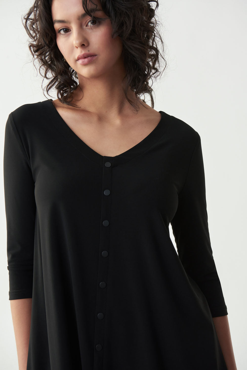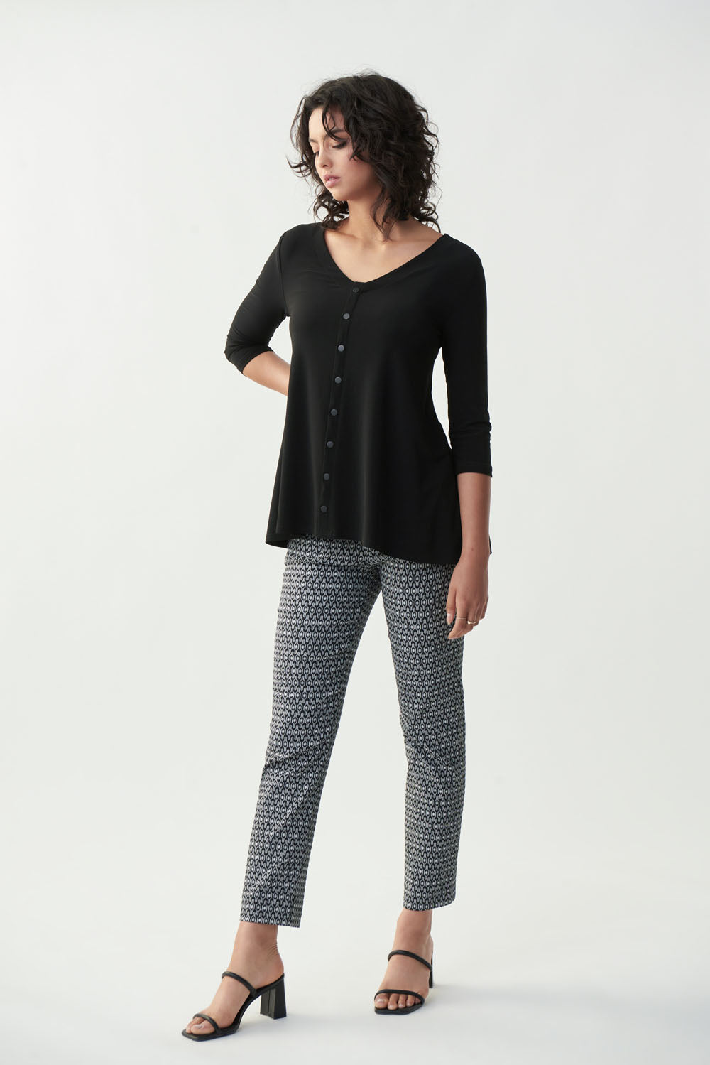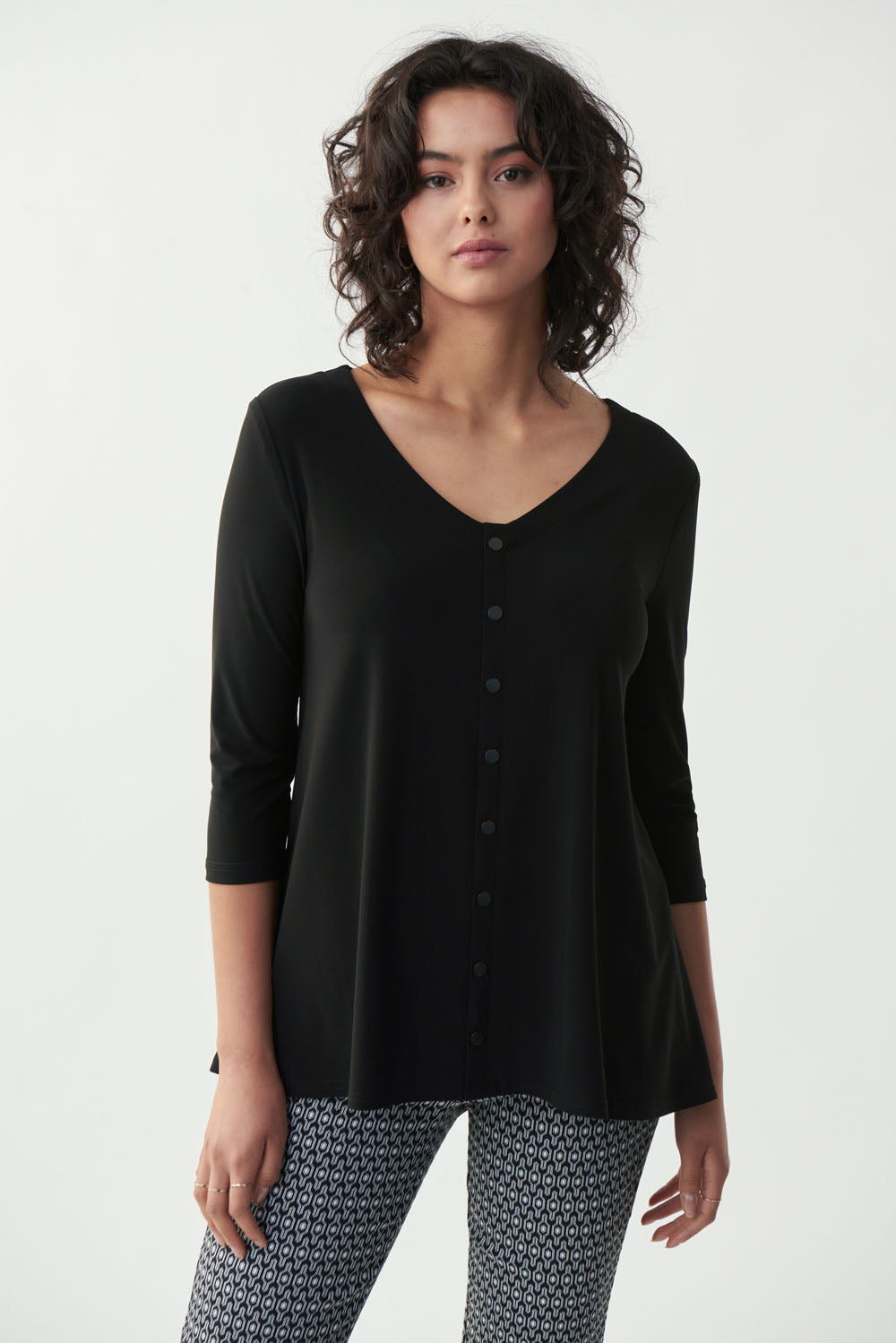 Joseph Ribkoff Black Flared Henley Top Style 221102