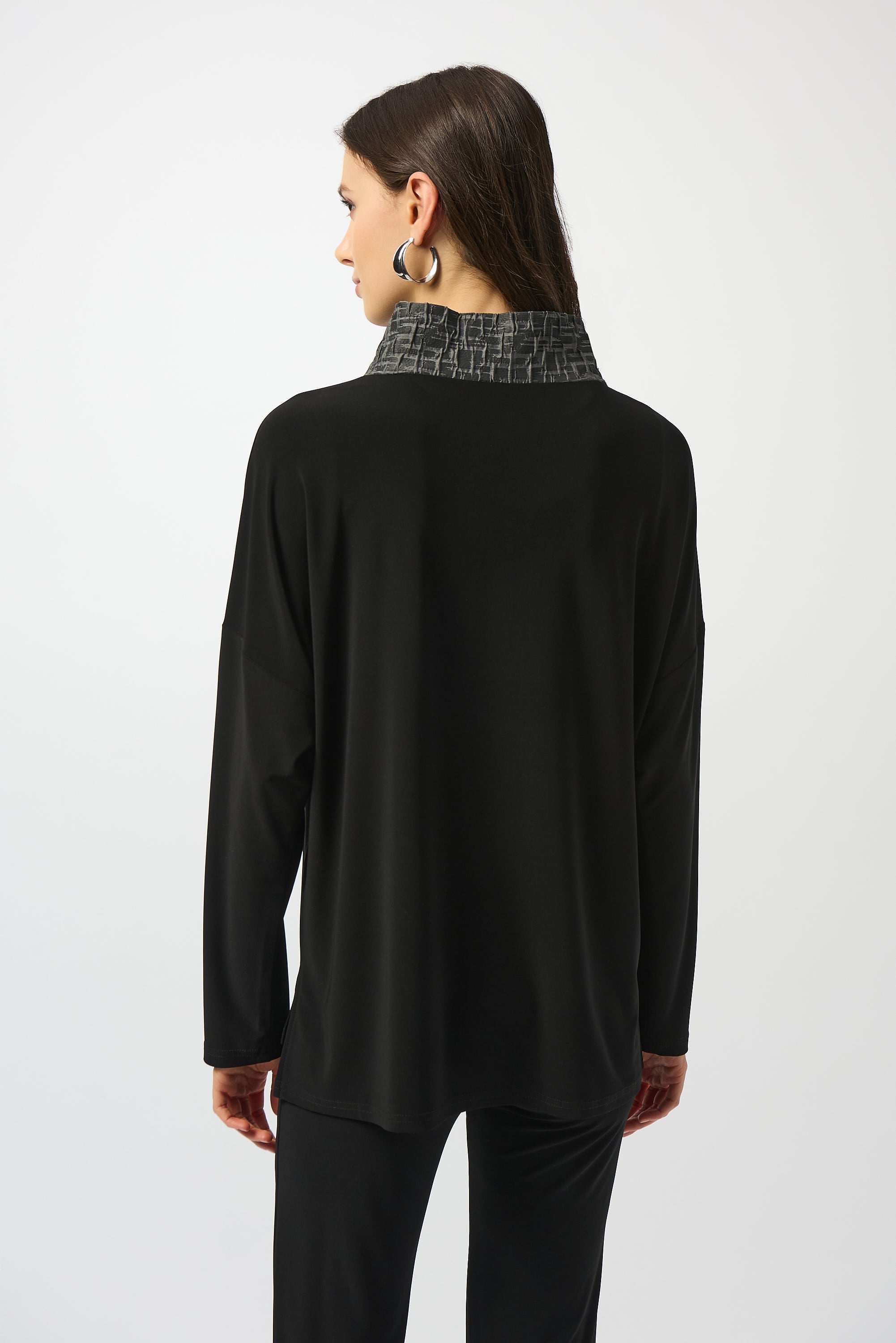 Joseph Ribkoff Black/Grey Silky Knit & Novelty Boxy Top Style 253052