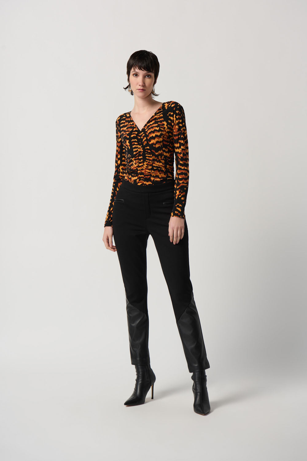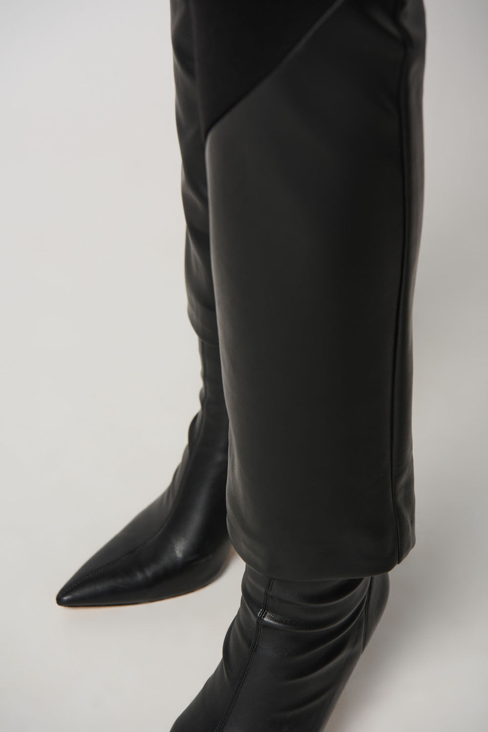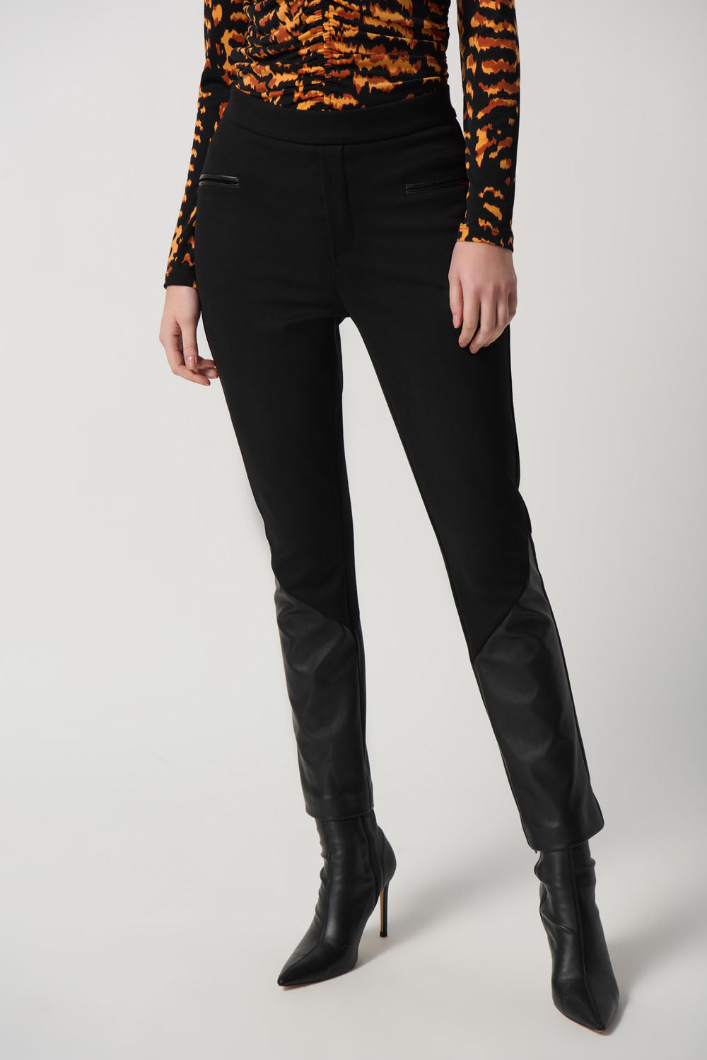 Joseph Ribkoff Black Heavy Knit And Faux Leather Pants Style 234036