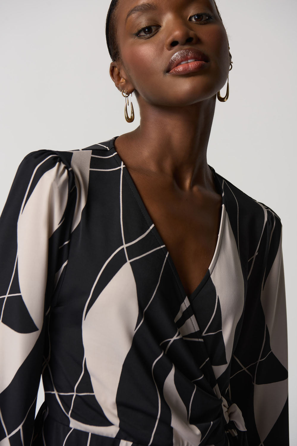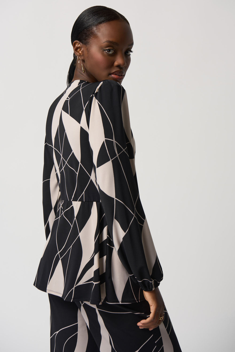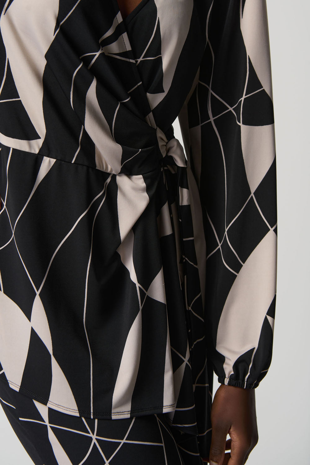 Joseph Ribkoff Black/Moonstone Abstract Print Wrap Tunic Style 233033