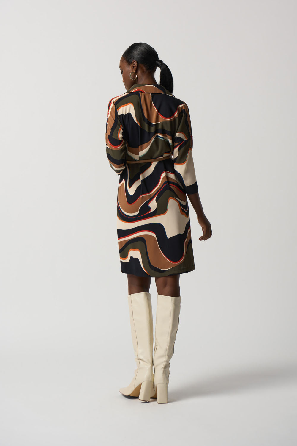 Joseph Ribkoff Black/Multi Abstract Print Belted Tunic Dress Style 233224