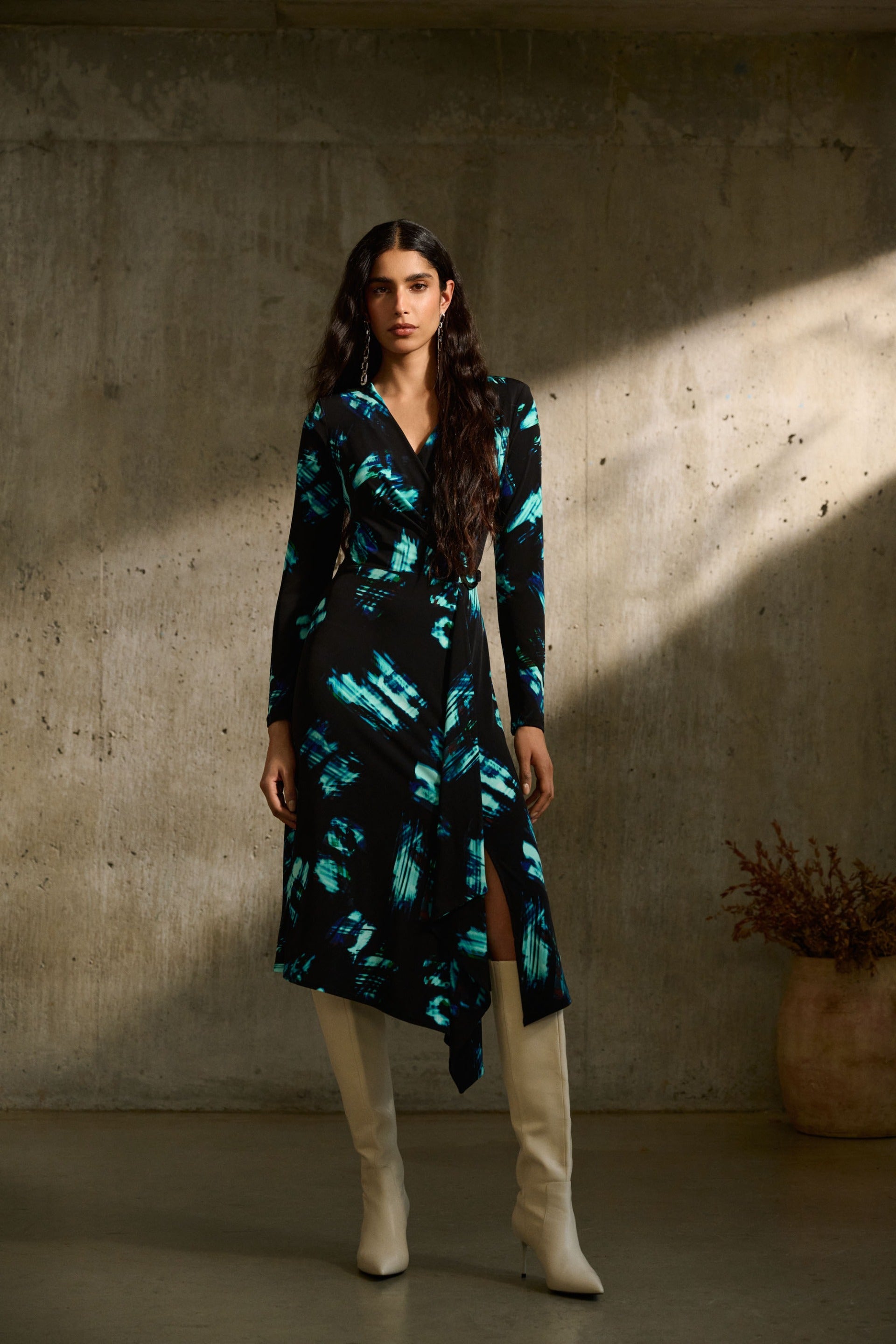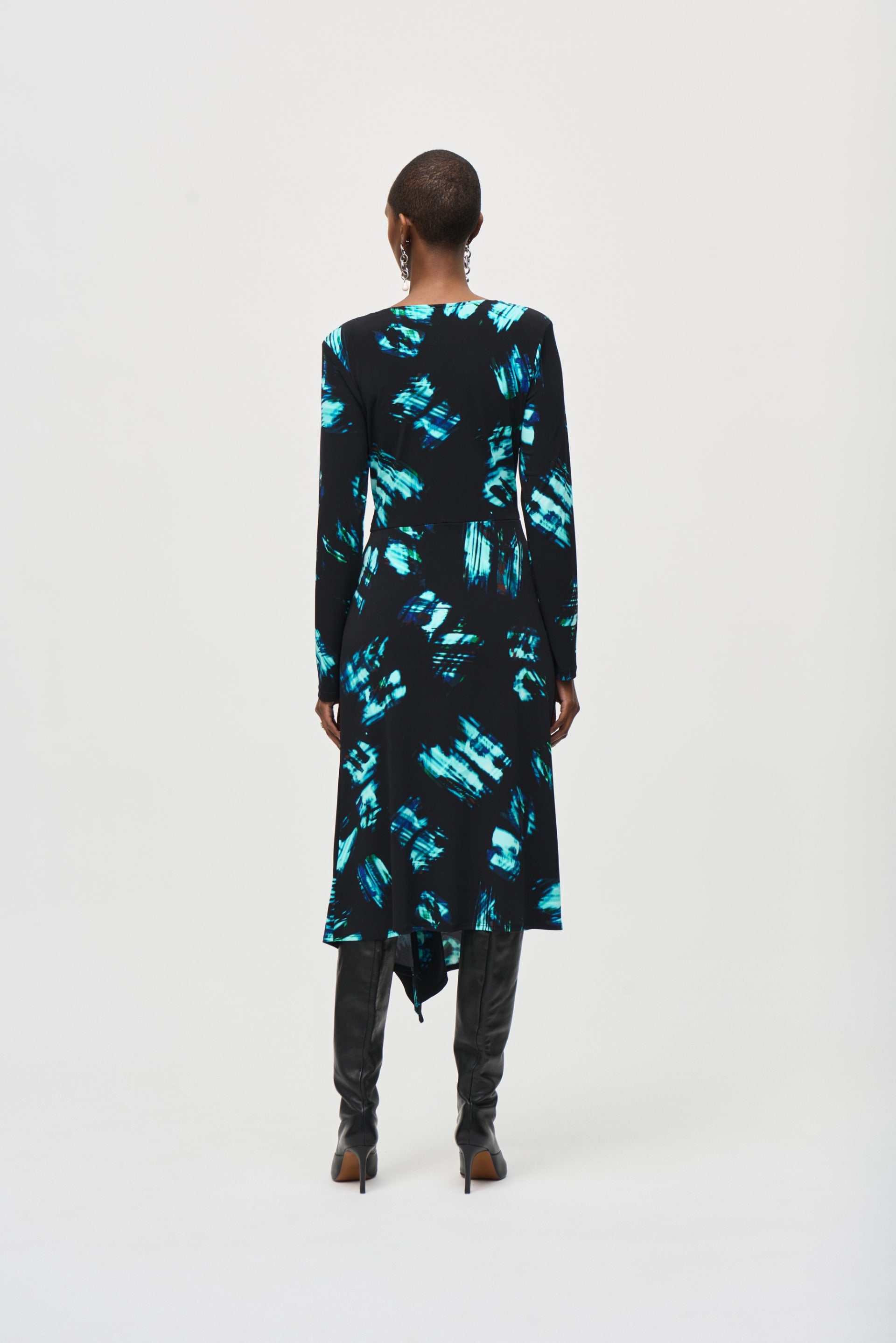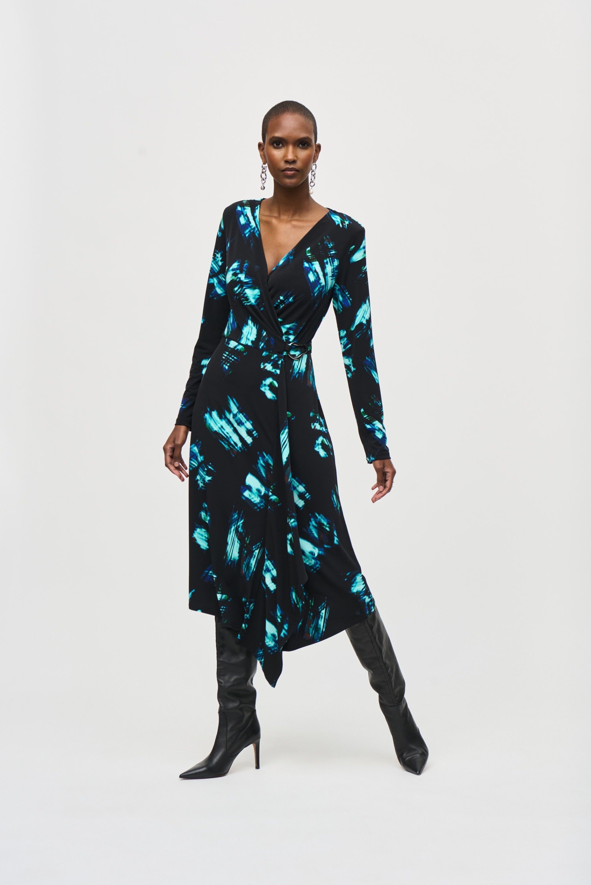 Joseph Ribkoff Black/Multi Abstract Print Wrap Dress Style 243147
