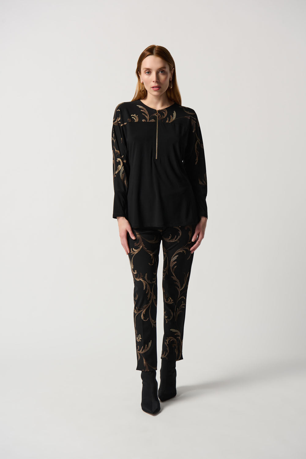 Joseph Ribkoff Black/Multi Baroque Print Slim Fit Pull-On Pants Style 234293