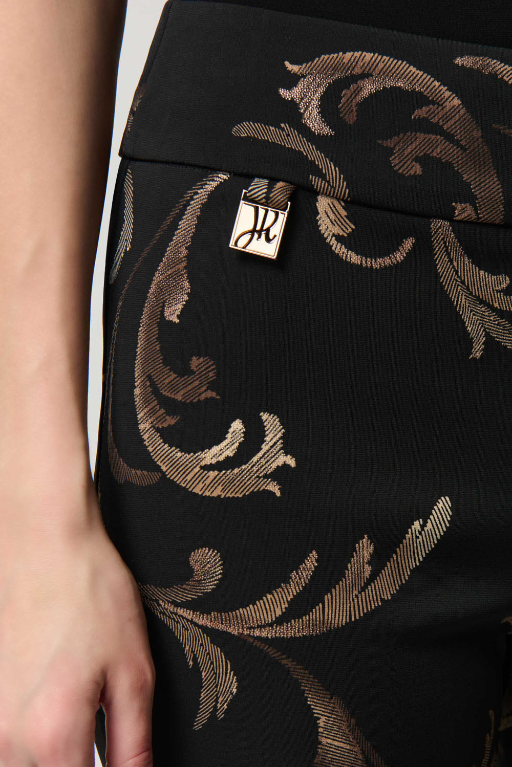 Details: Structured contour waistband. Joseph Ribkoff tab ornament. Unlined.