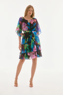 Joseph Ribkoff Black/Multi Chiffon Floral Print A-Line Dress Style 251757