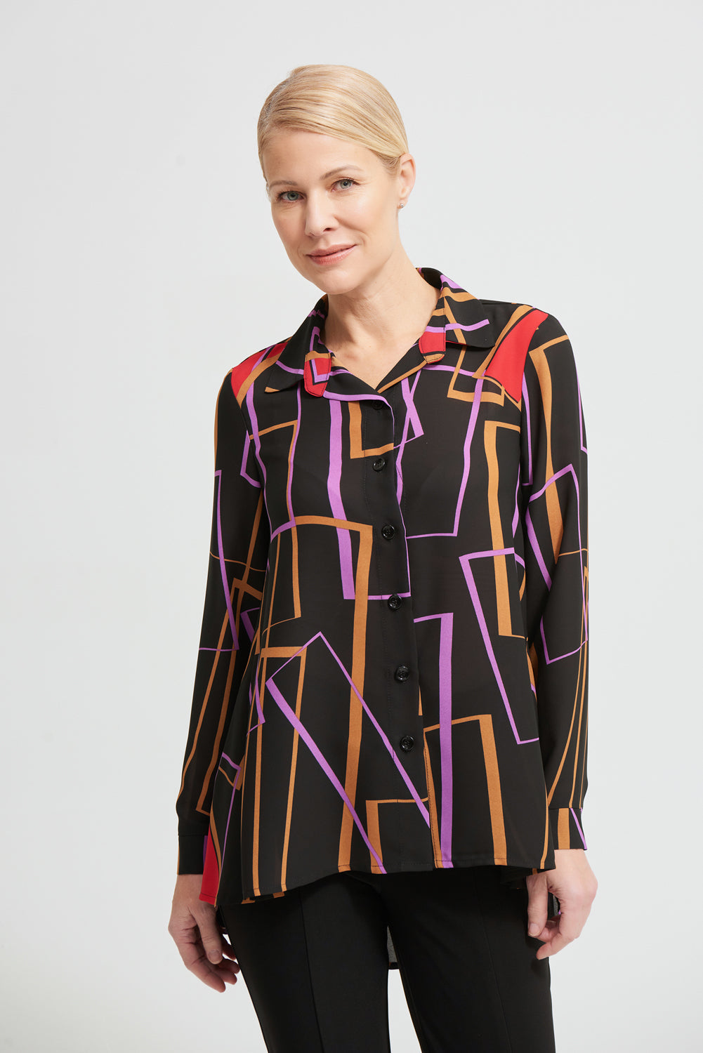 Joseph Ribkoff Black/Multi Geometric Print Blouse Style 213268