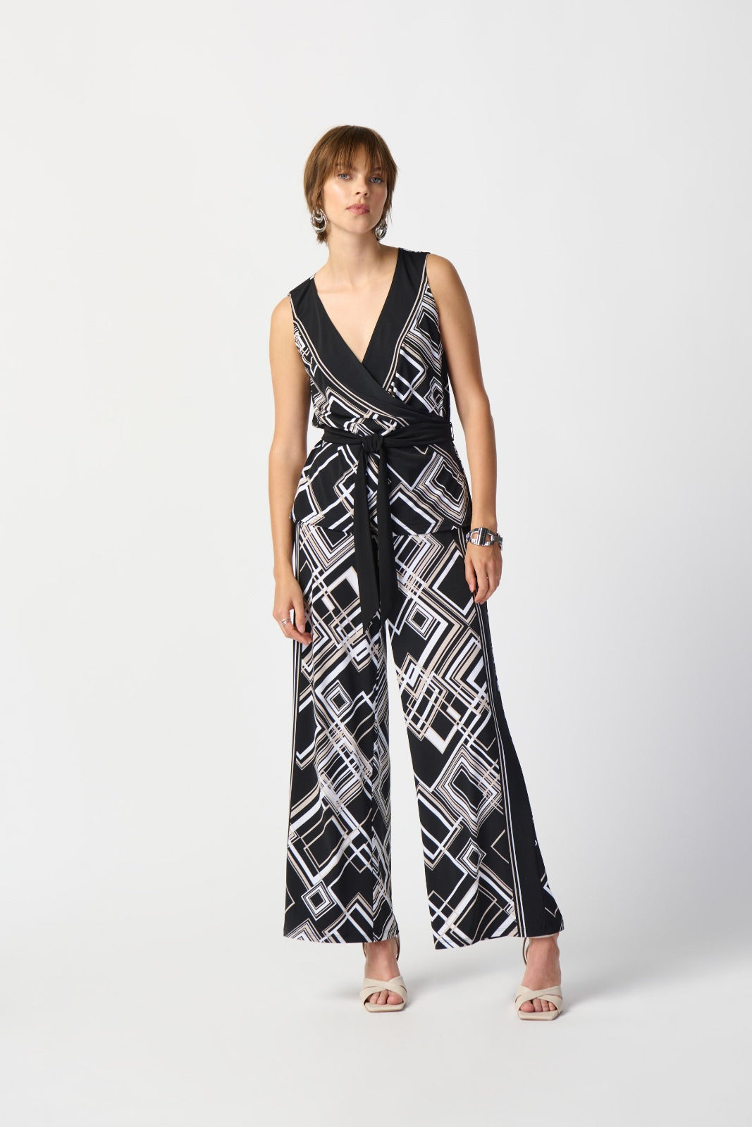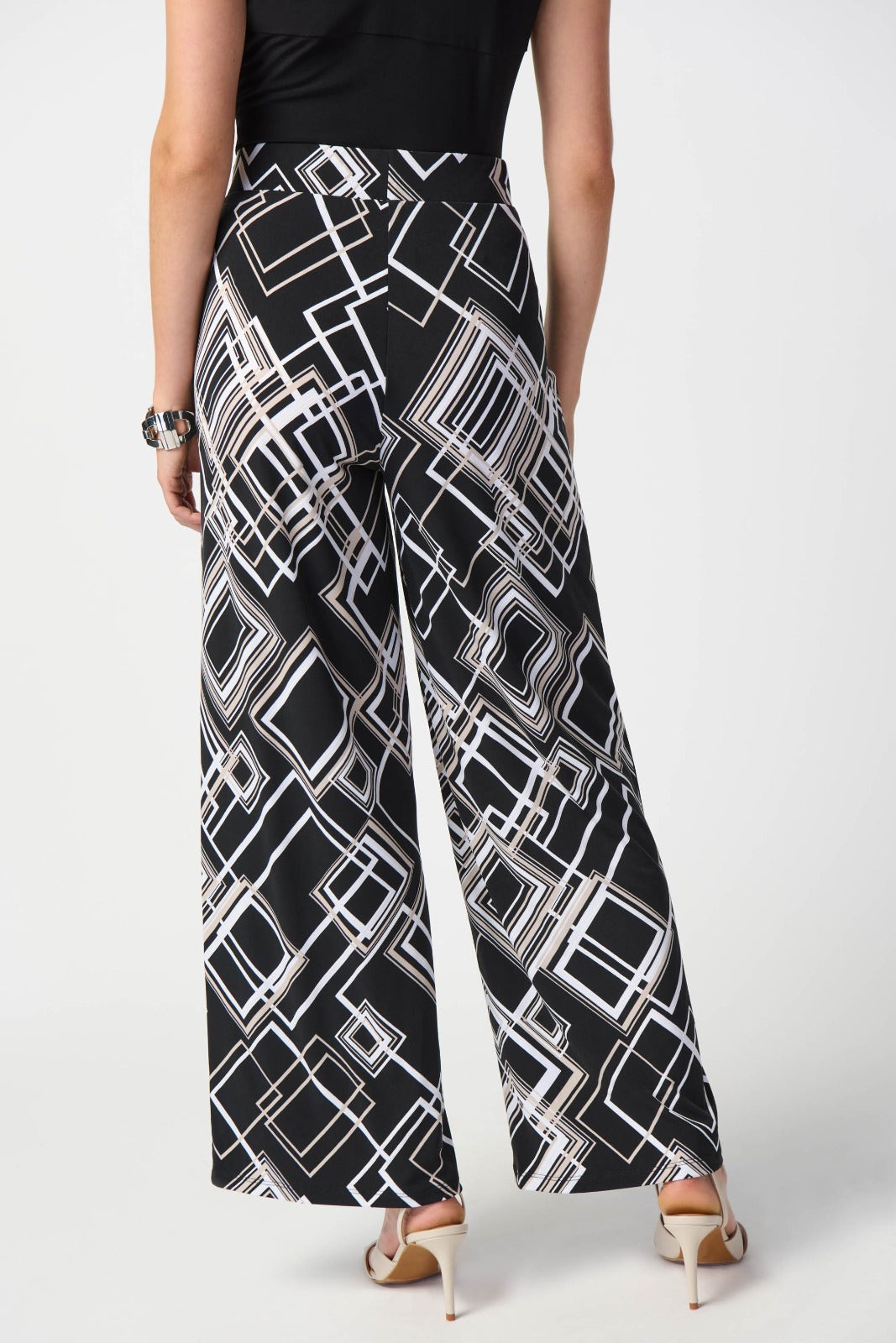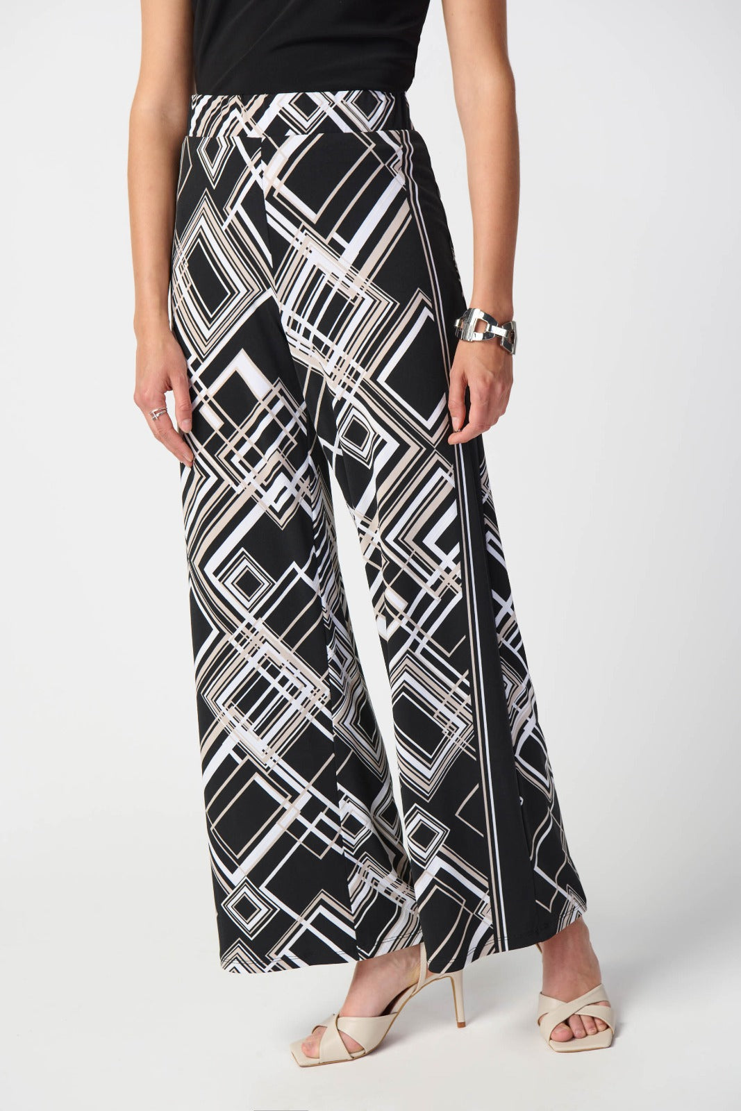 Joseph Ribkoff Black/Multi Geometric Print Wide-Leg Pants Style 241072