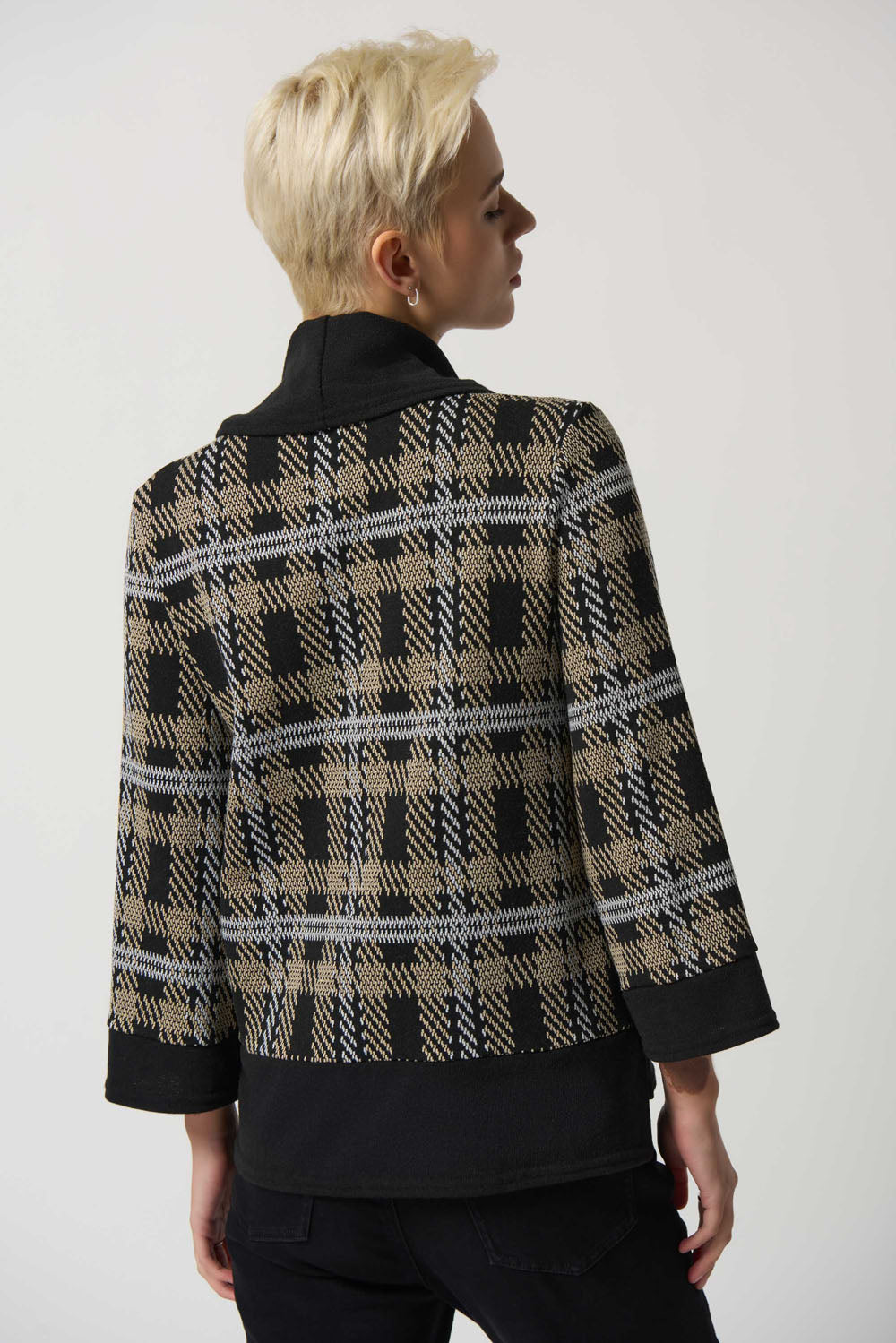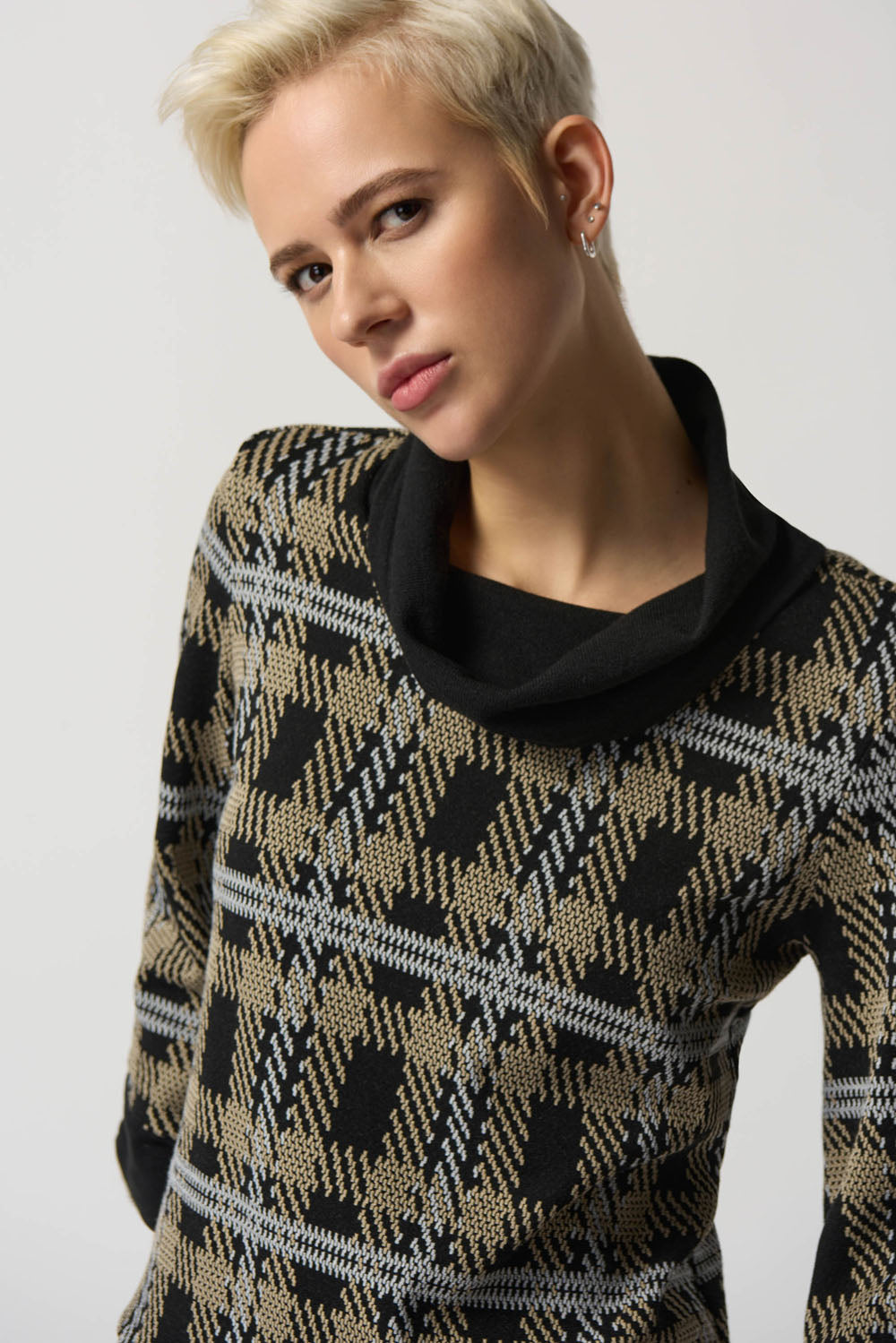 Joseph Ribkoff Black/Multi Plaid Cowl Neck Sweater Style 233266