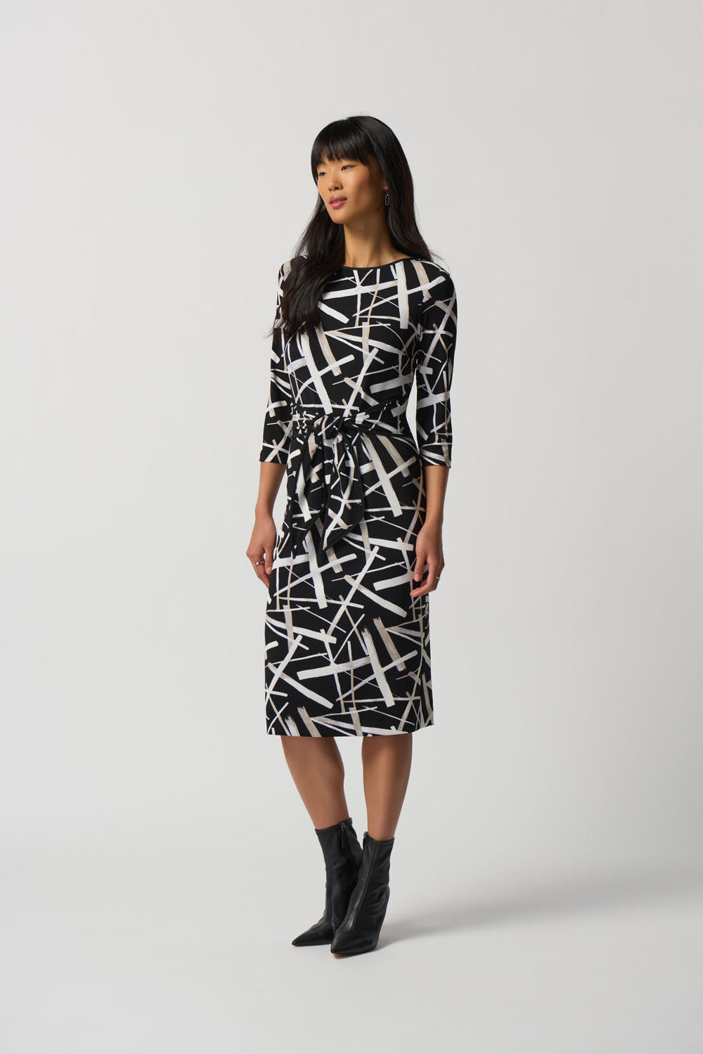 Joseph Ribkoff Black/Multi Scoop Neck Sheath Dress Style 233175