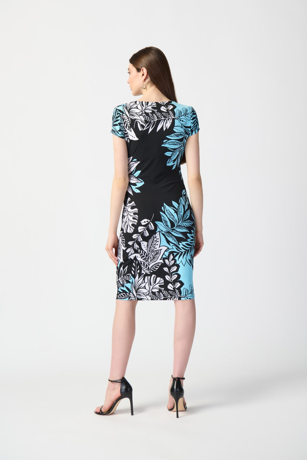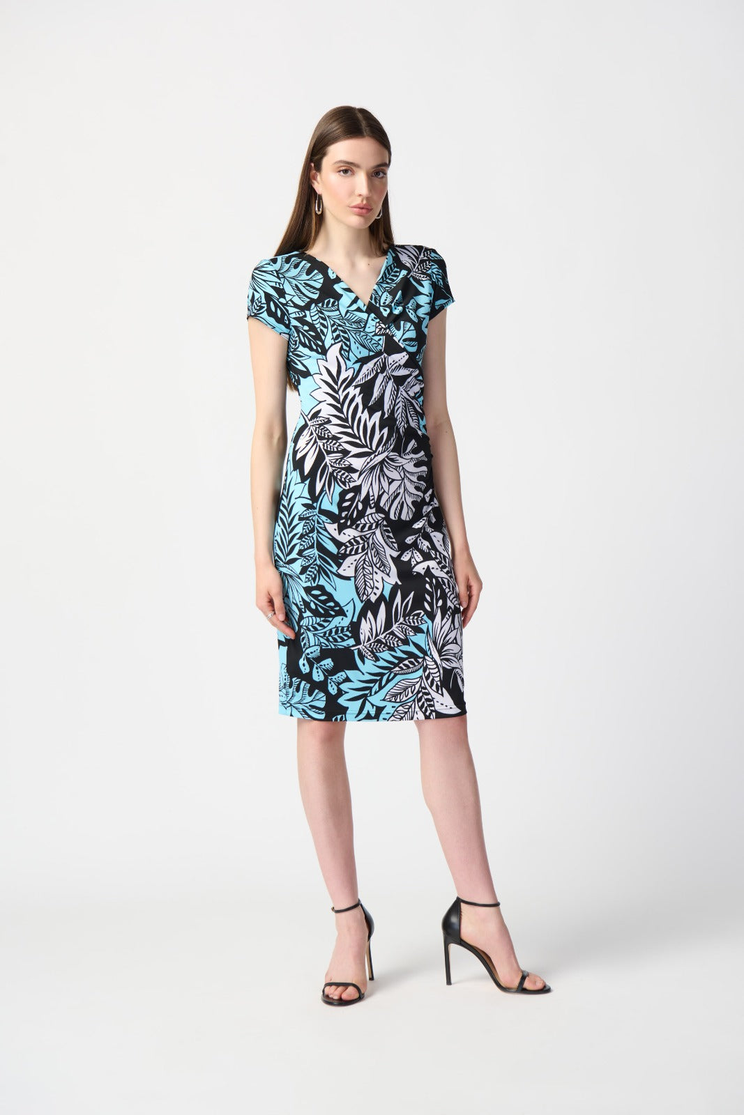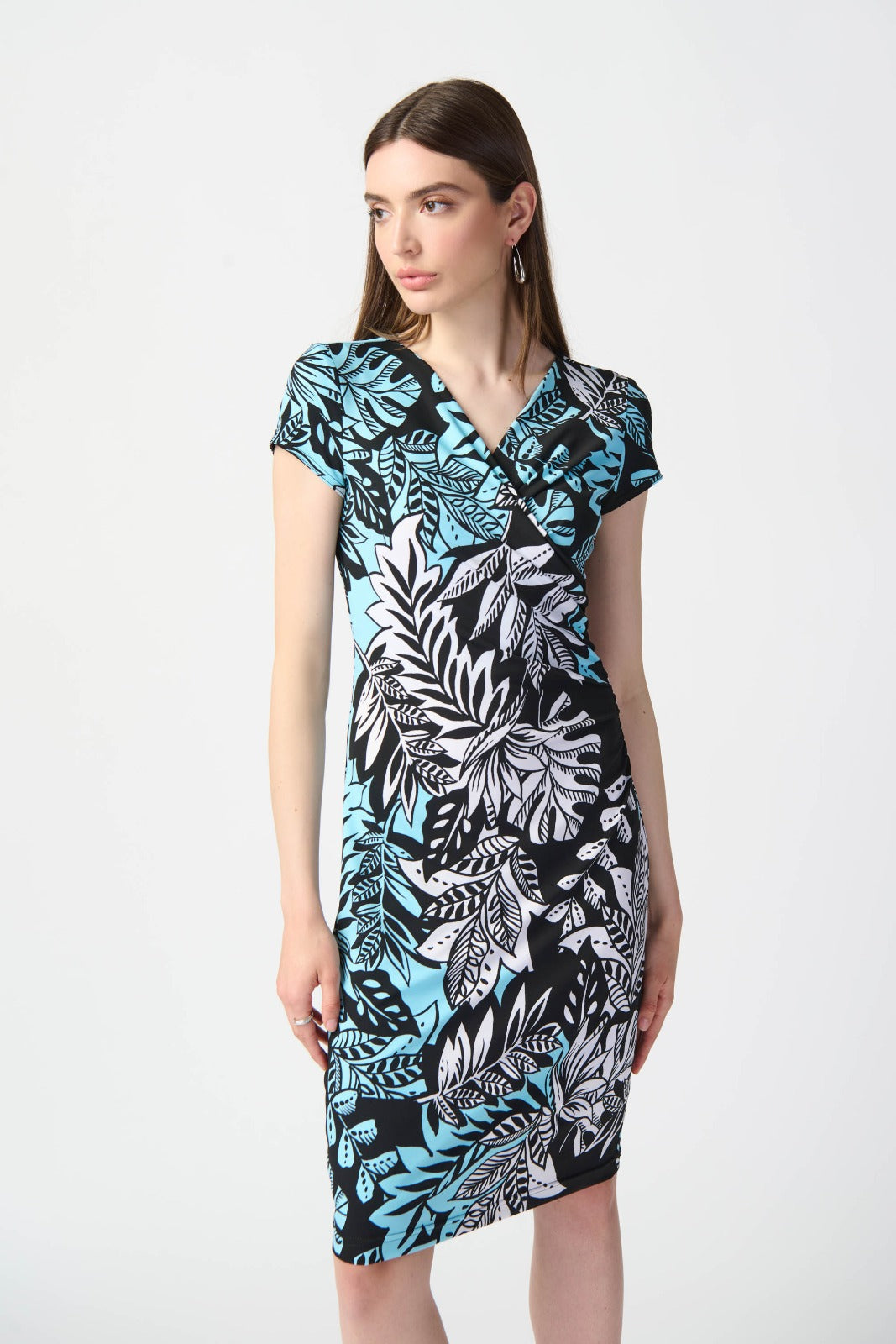 Joseph Ribkoff Black/Multi Tropical Print Silky Knit Wrap Dress Style 241287
