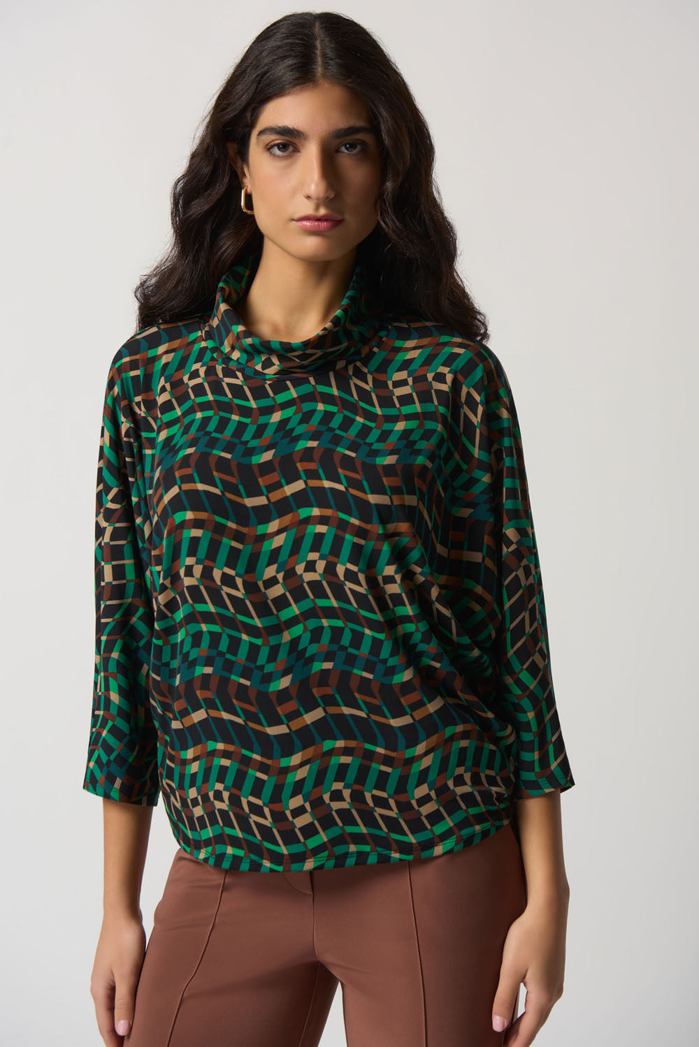 Joseph Ribkoff Black/Multi Turtleneck Boxy Top Style 233292