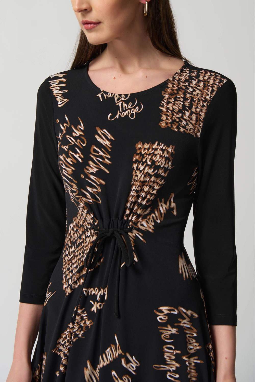 Joseph Ribkoff Black/Multi Waist Tie Cocoon Dress Style 233152