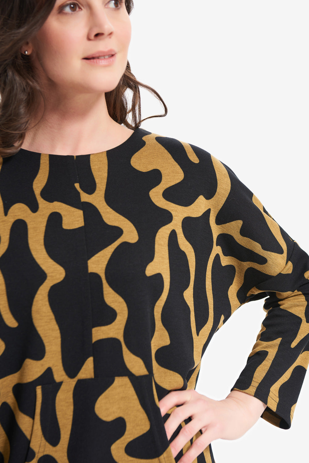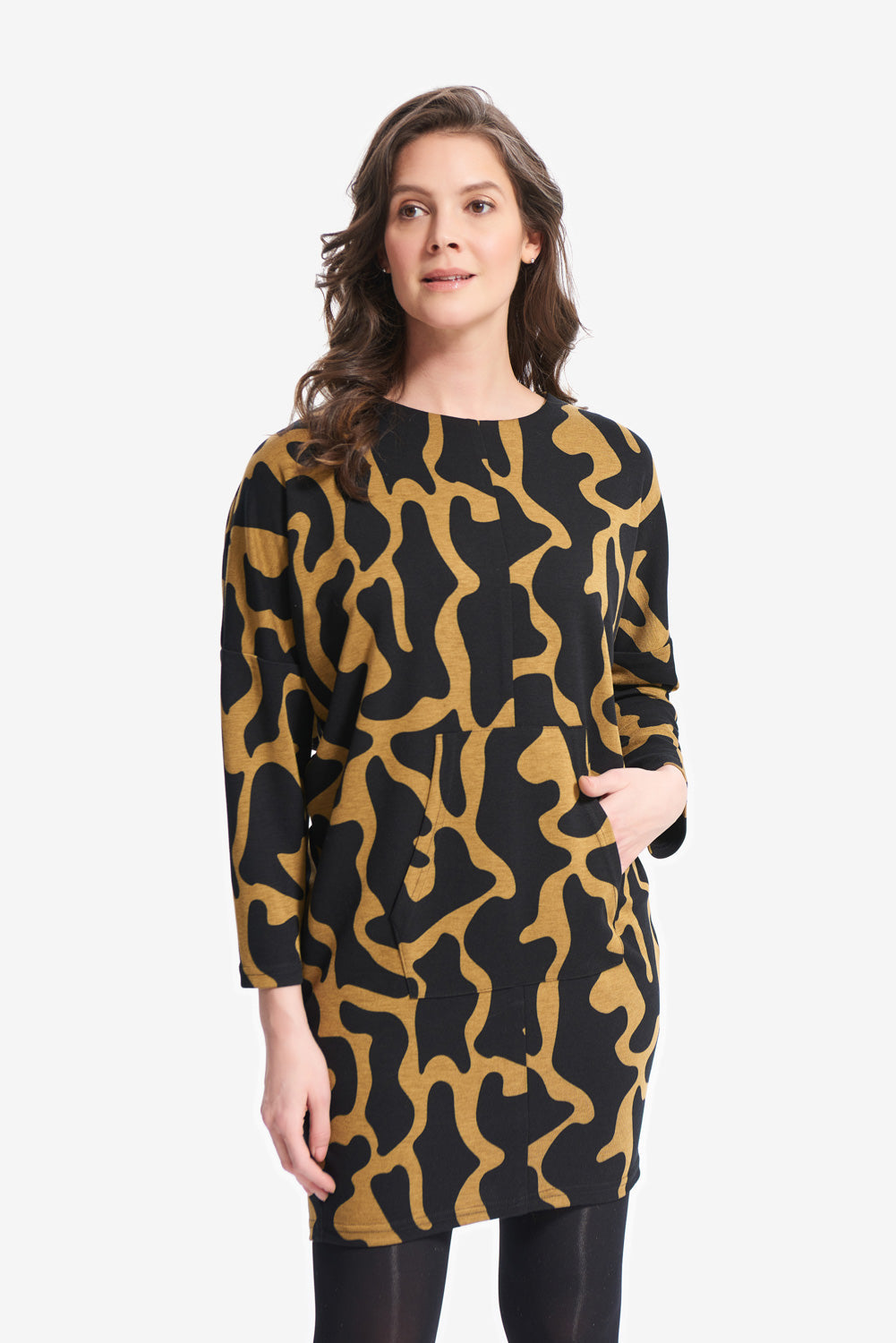 Joseph Ribkoff Black/Mustard Abstract Printed Dress Style 214282