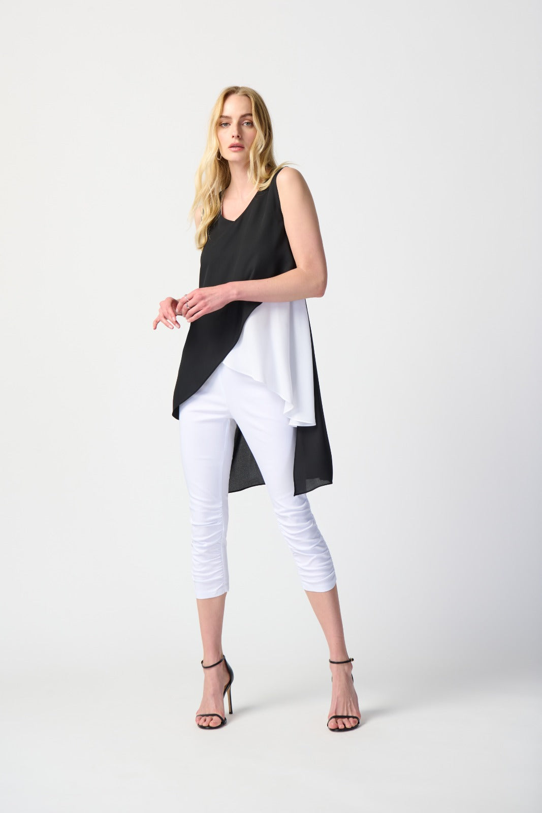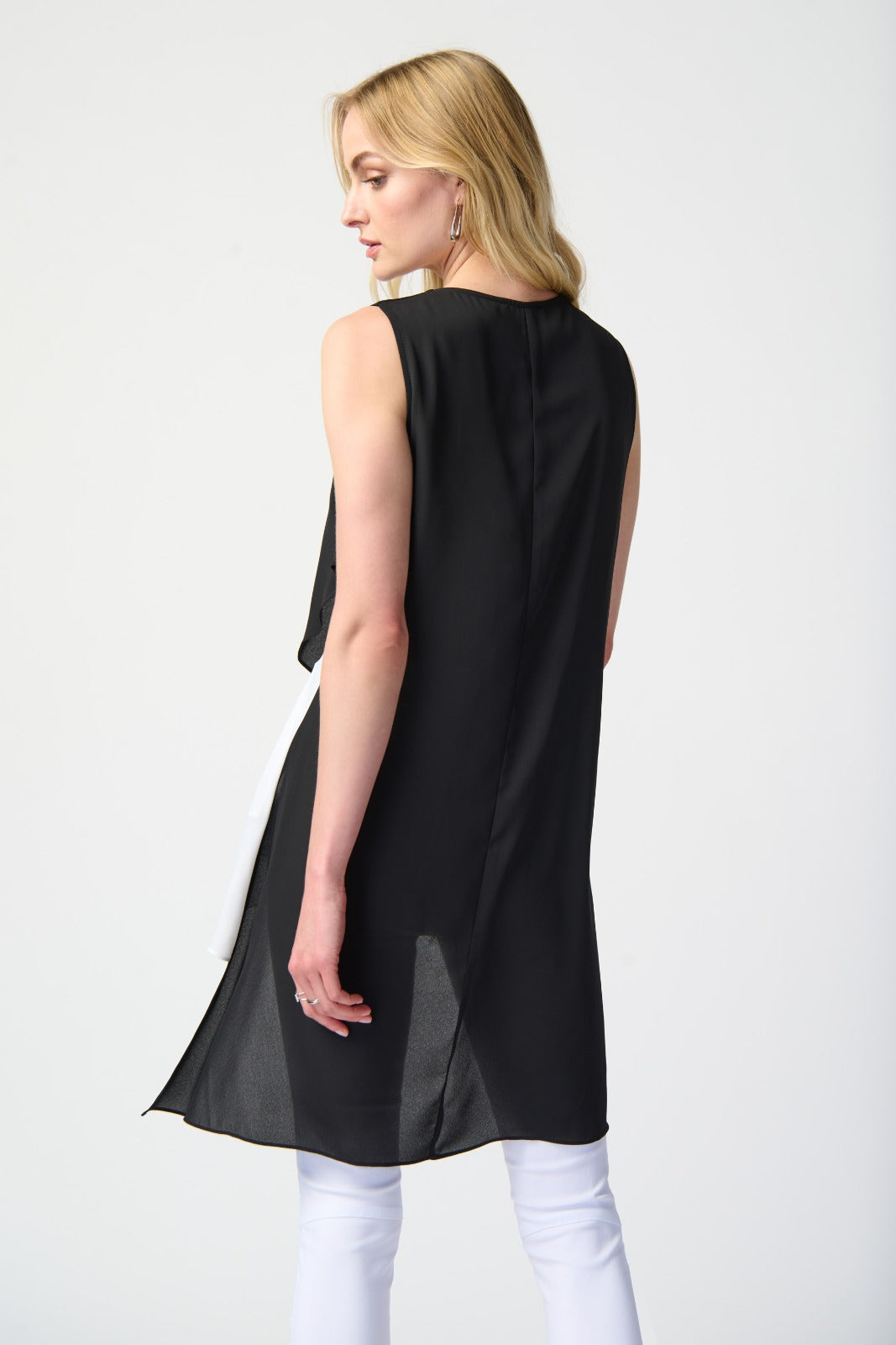 Joseph Ribkoff Black/Off-White Colour-Block Asymmetrical Top Style 241306