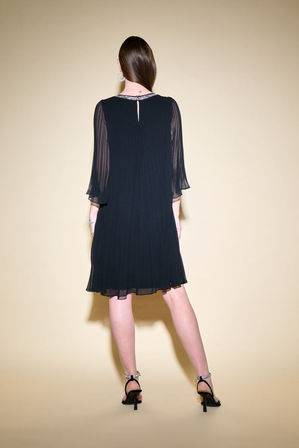 Joseph Ribkoff Black Pleated Chiffon Trapeze Dress Style 234700