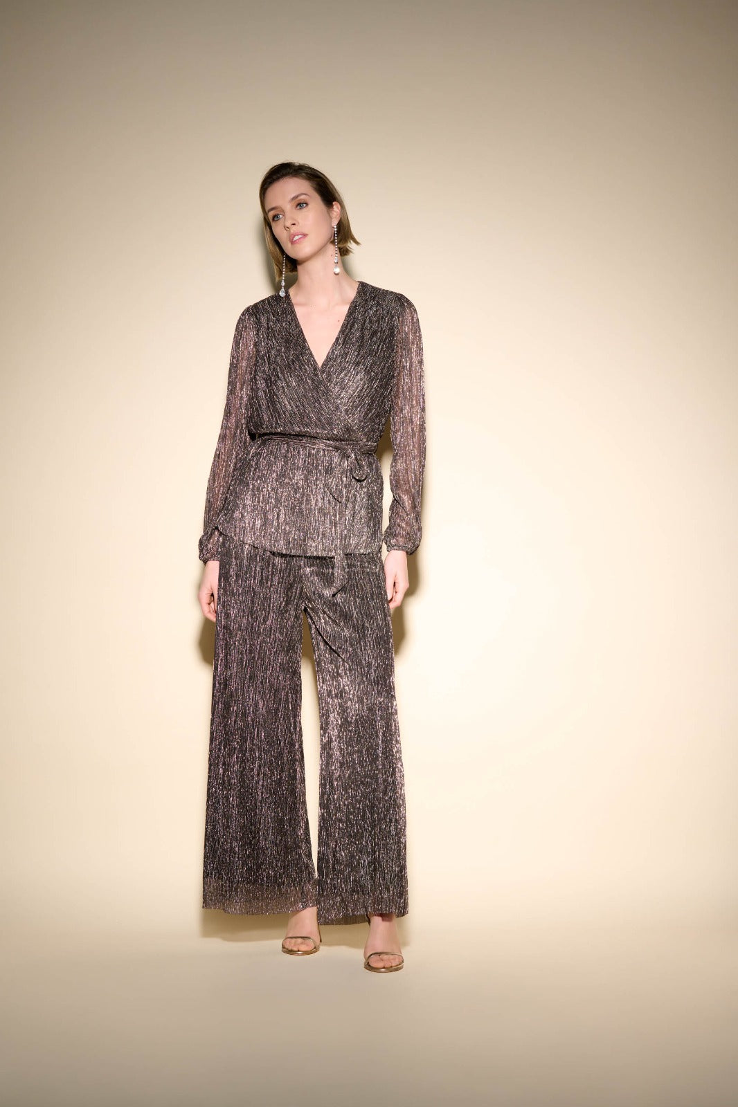 Joseph Ribkoff Black/Rose Gold Novelty Puff Sleeve Top Style 233780