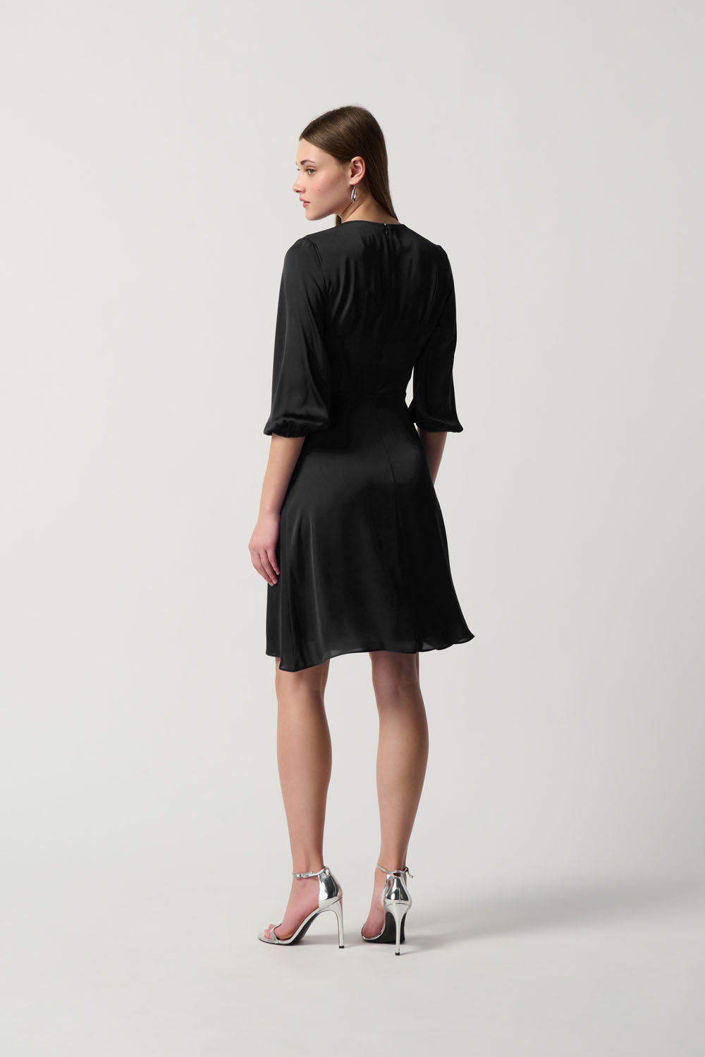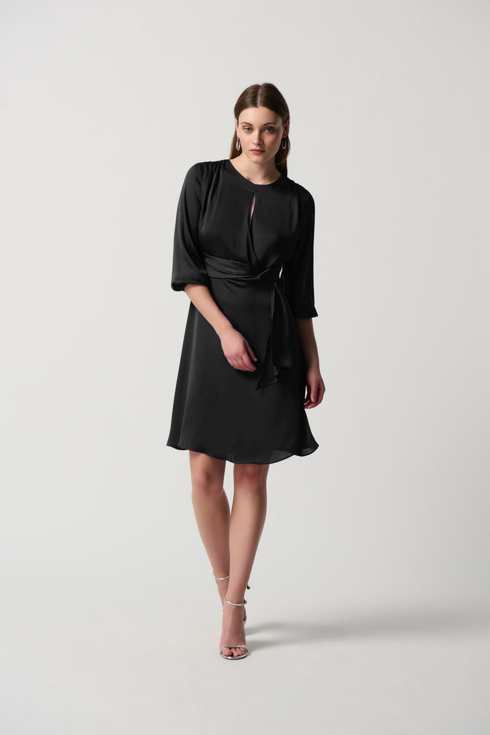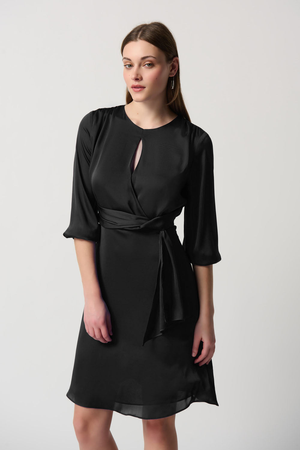 Joseph Ribkoff Black Satin Keyhole Neckline A-Line Dress Style 234127