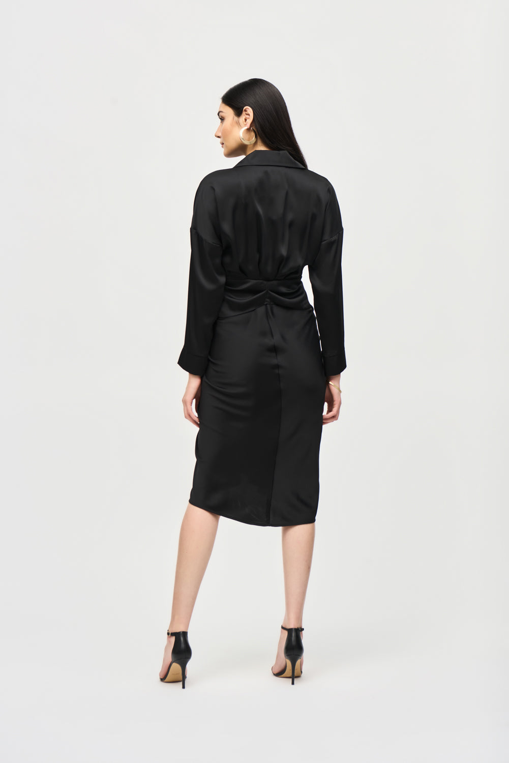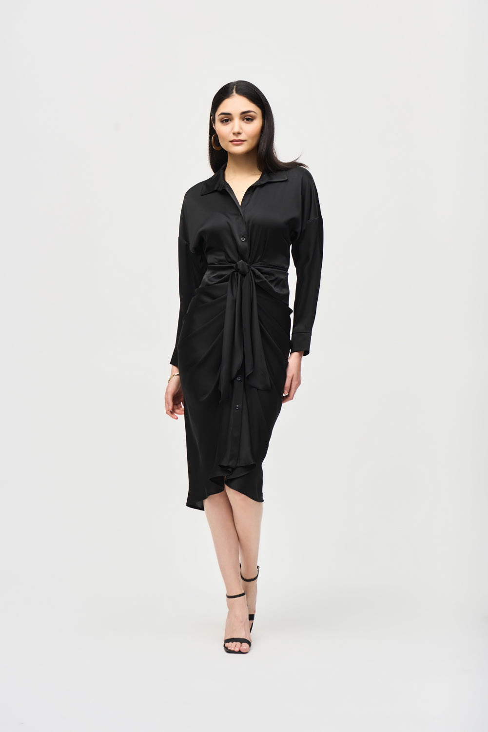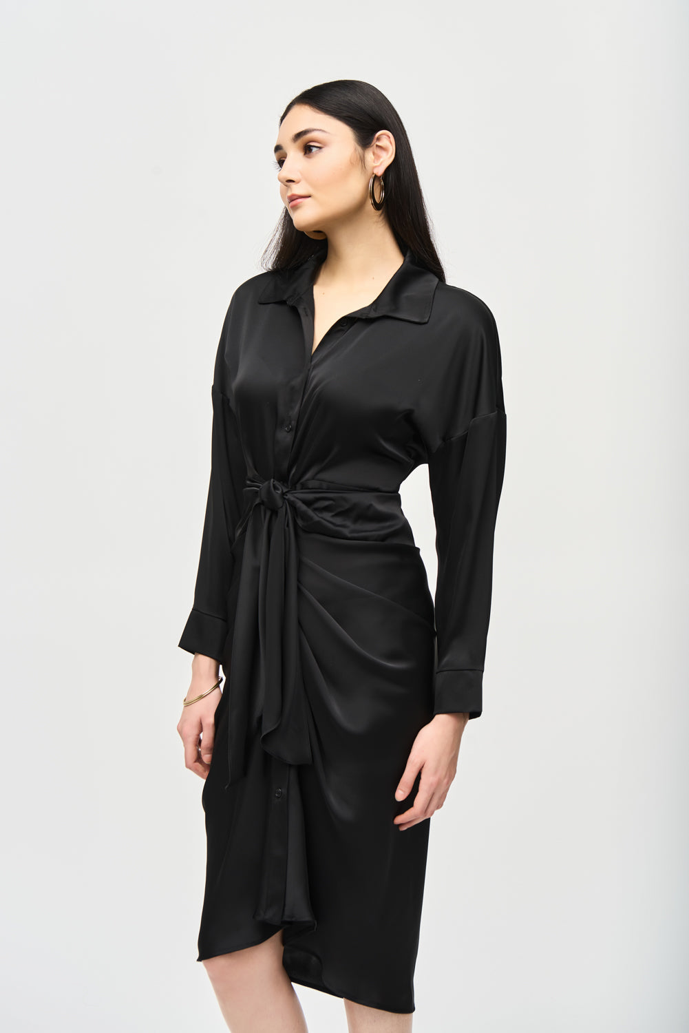 Joseph Ribkoff Black Satin Shirt Dress Style 241236