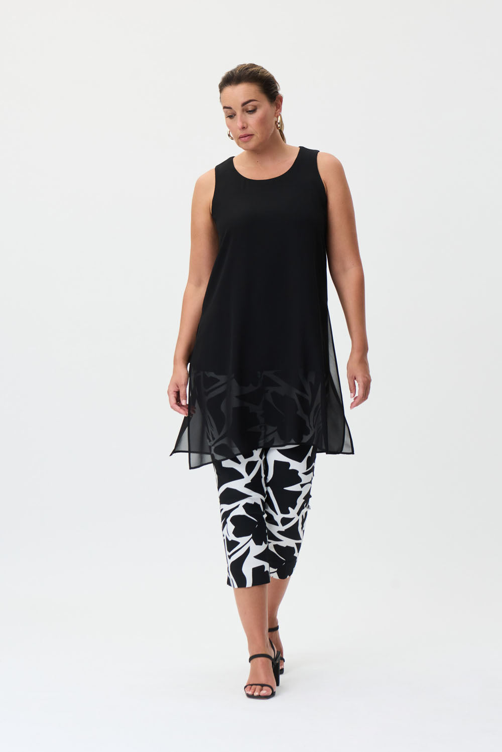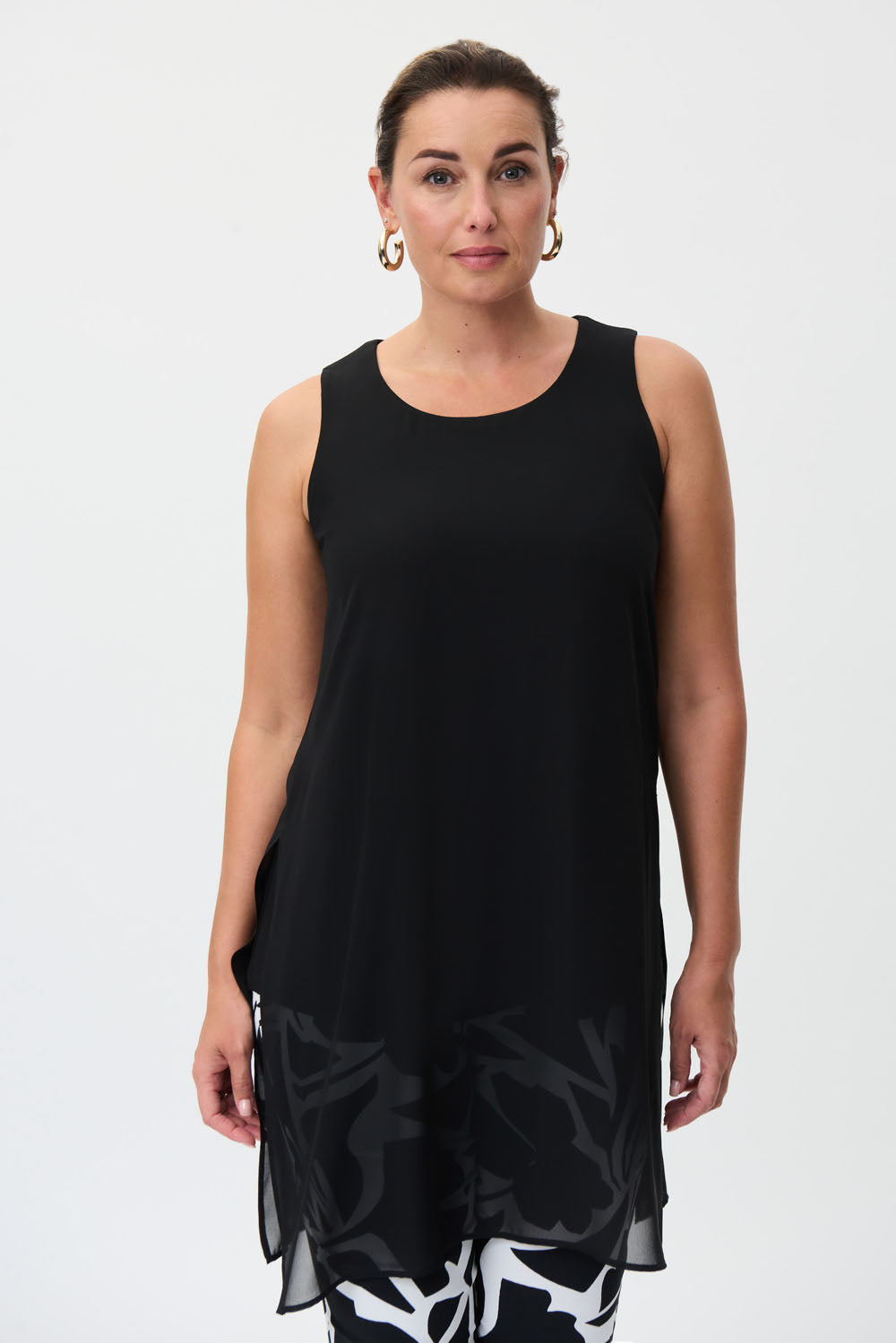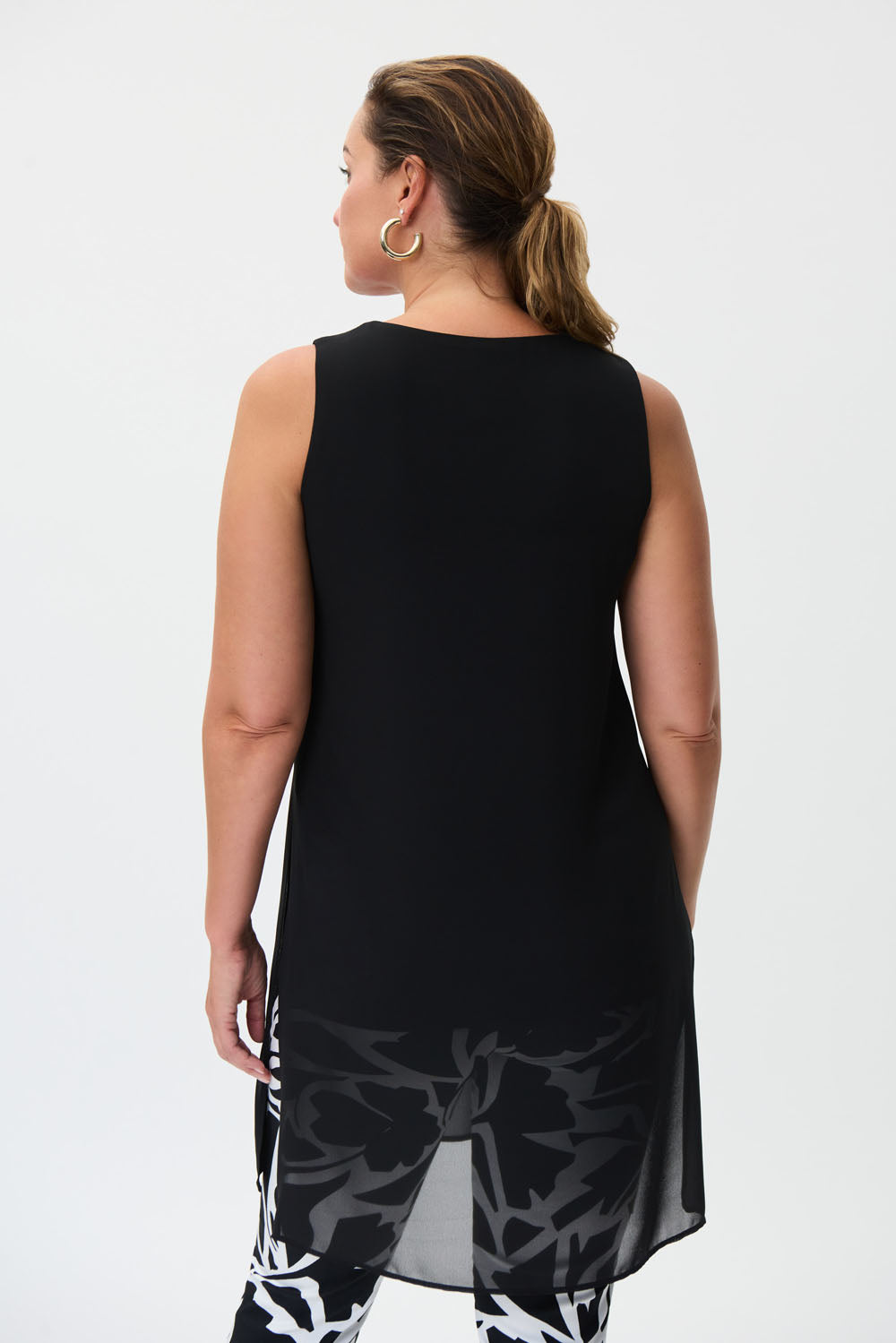 Joseph Ribkoff Black Silky Knit and Chiffon Tunic Style 232028