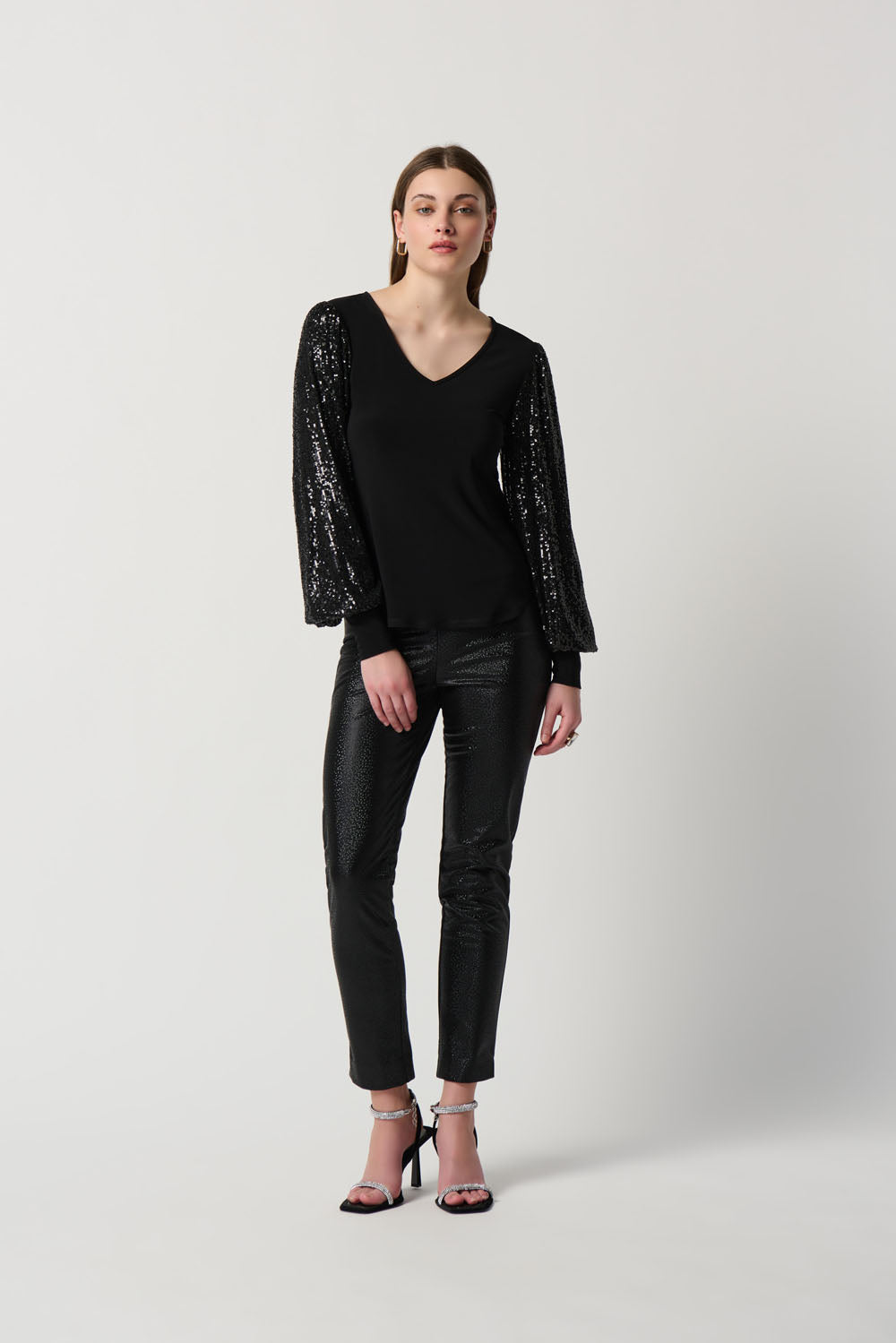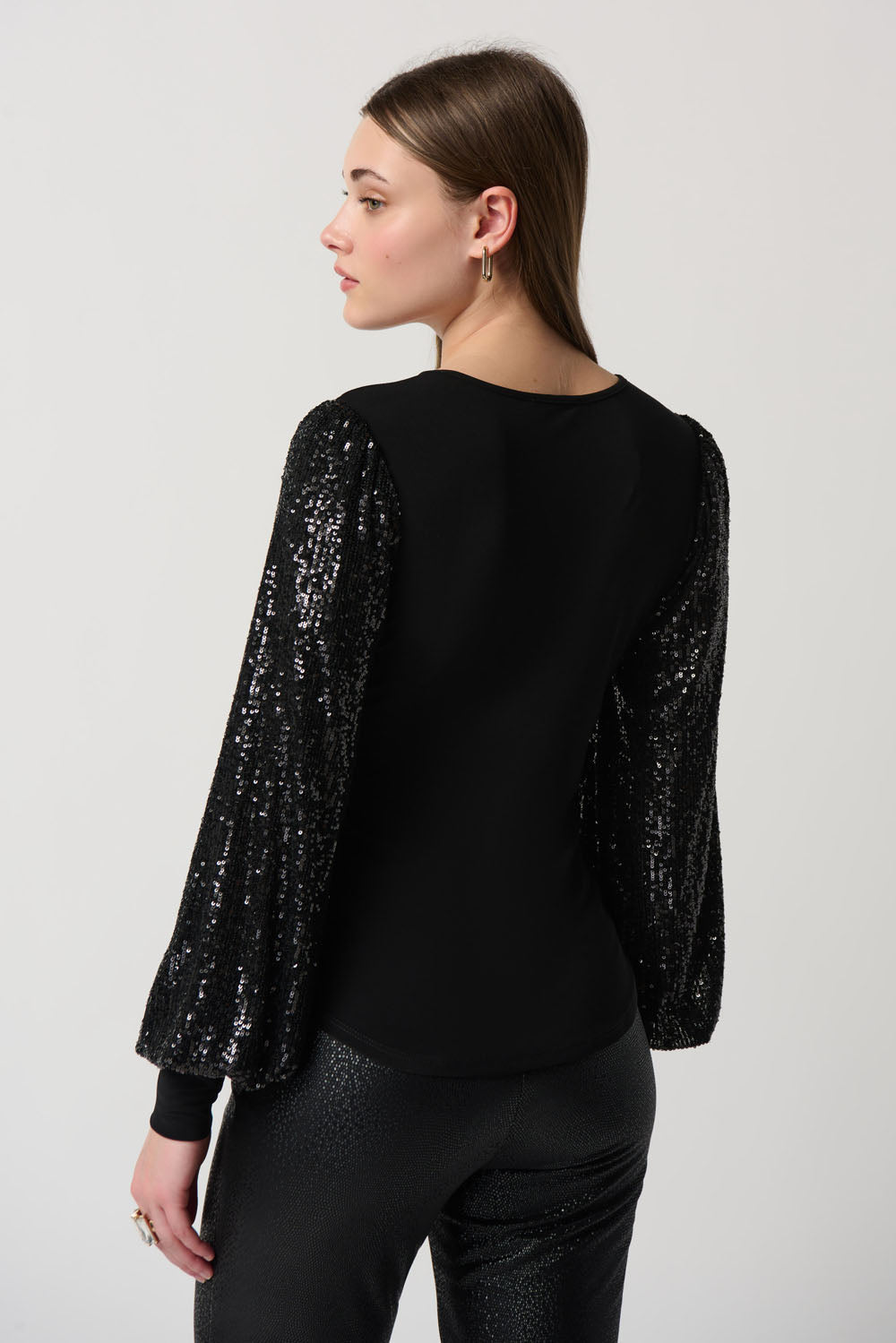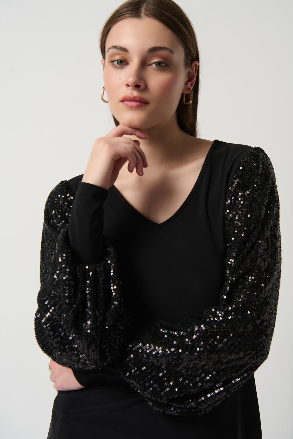 Joseph Ribkoff Black Silky Knit Sequins Puff Sleeve Top Style 234130