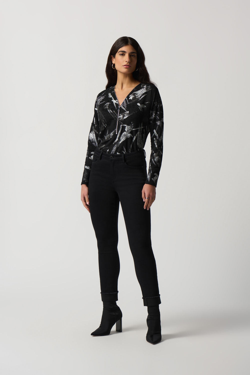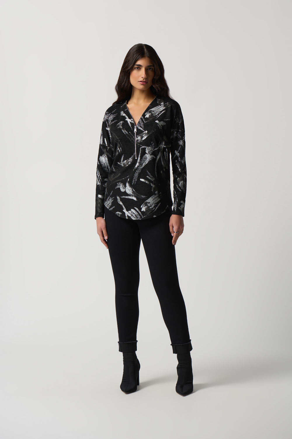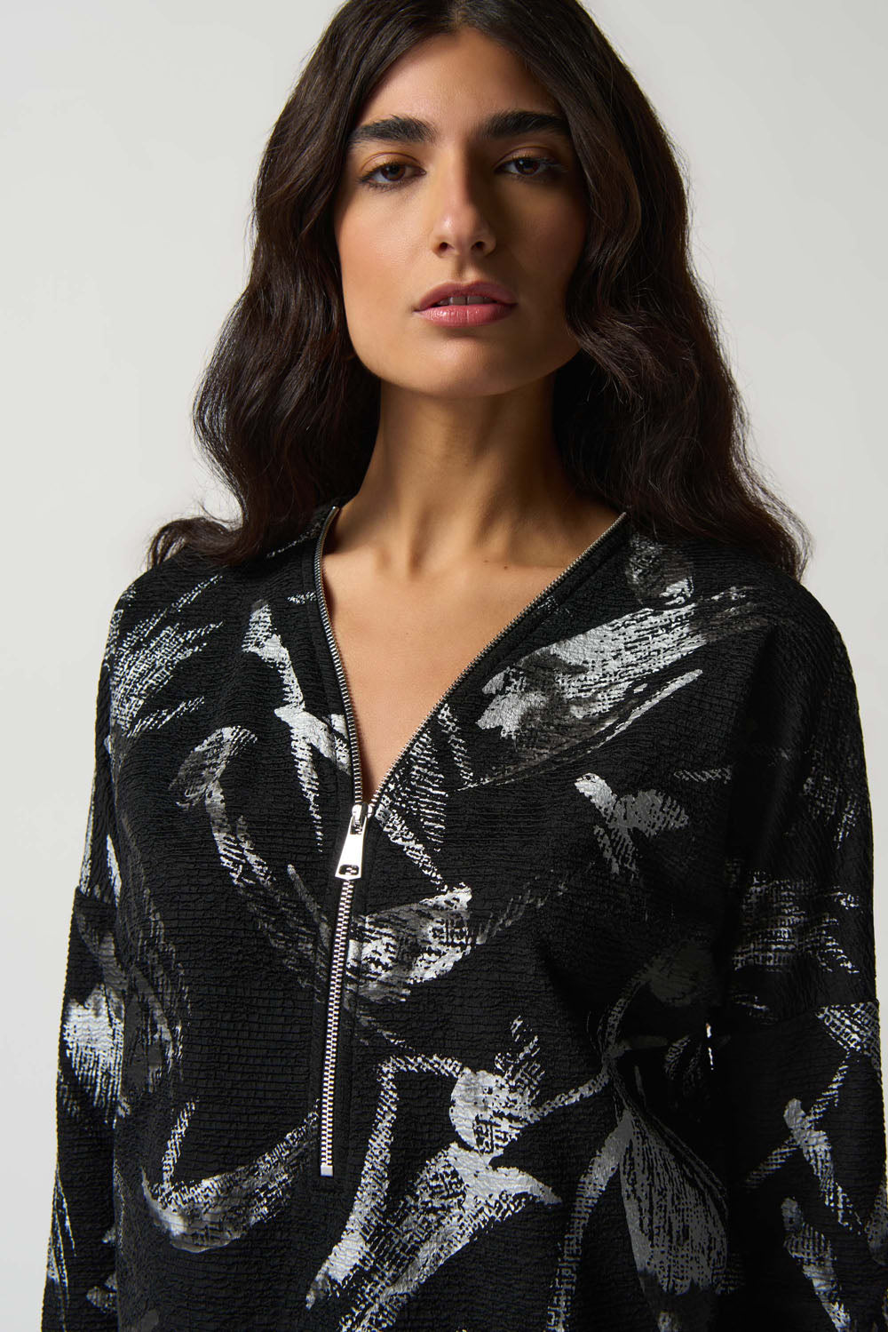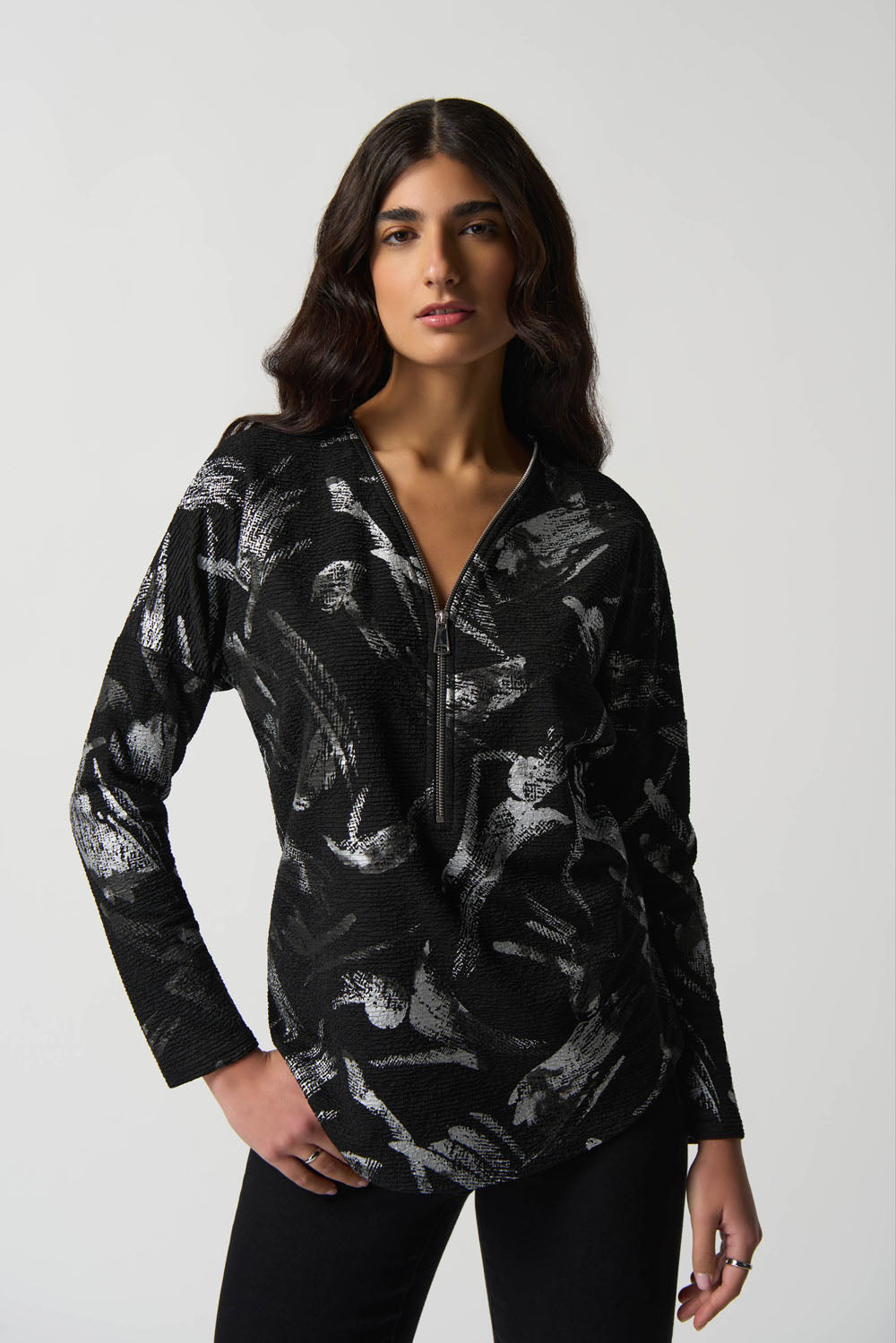 Joseph Ribkoff Black/Silver Abstract Print Boxy Top Style 233207