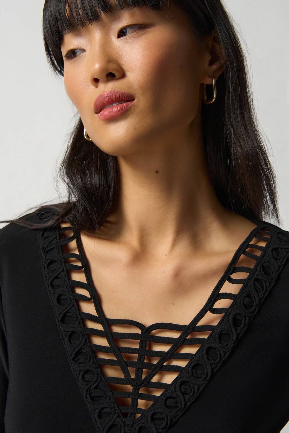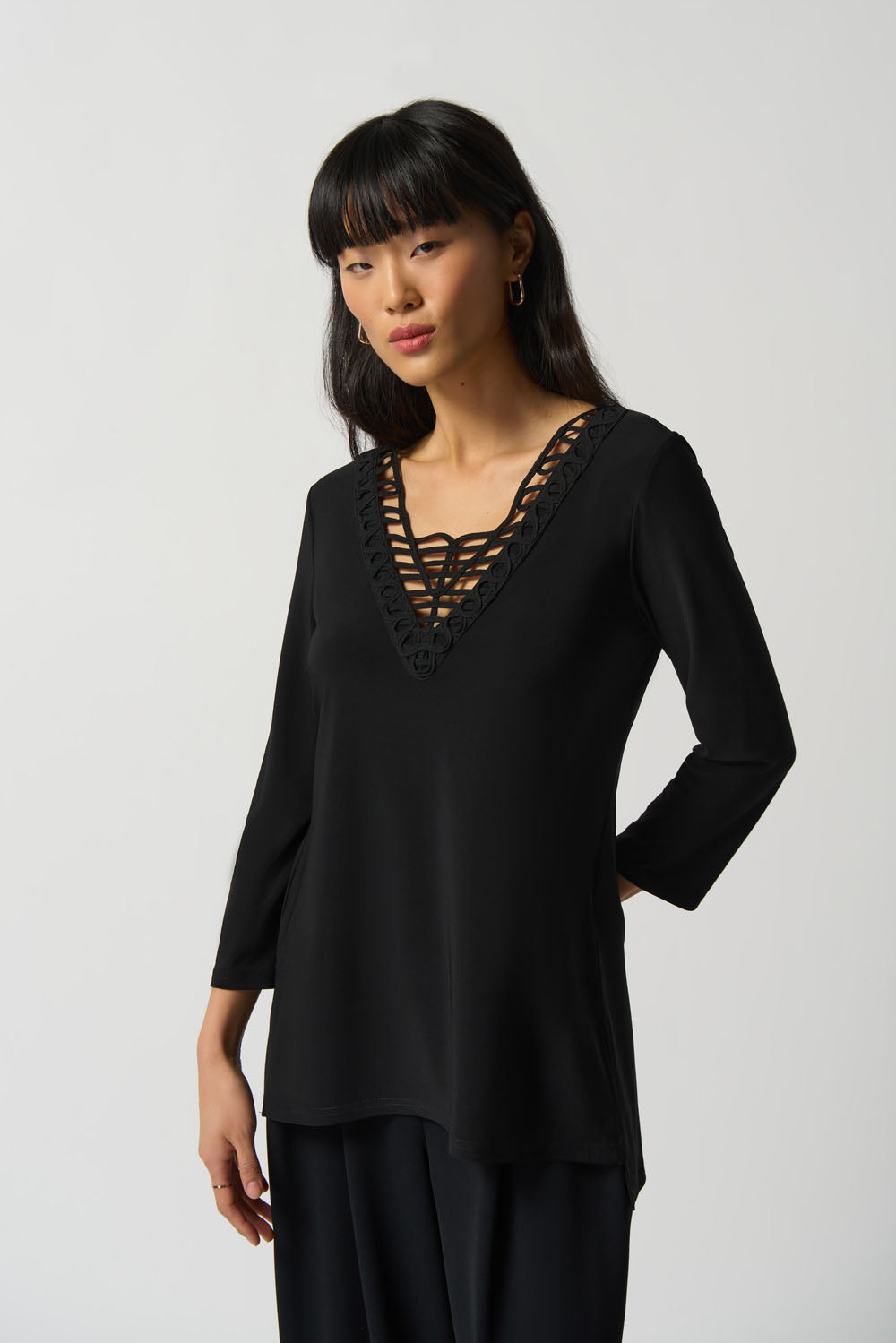 Joseph Ribkoff Black Soutache Neckline Top Style 233124