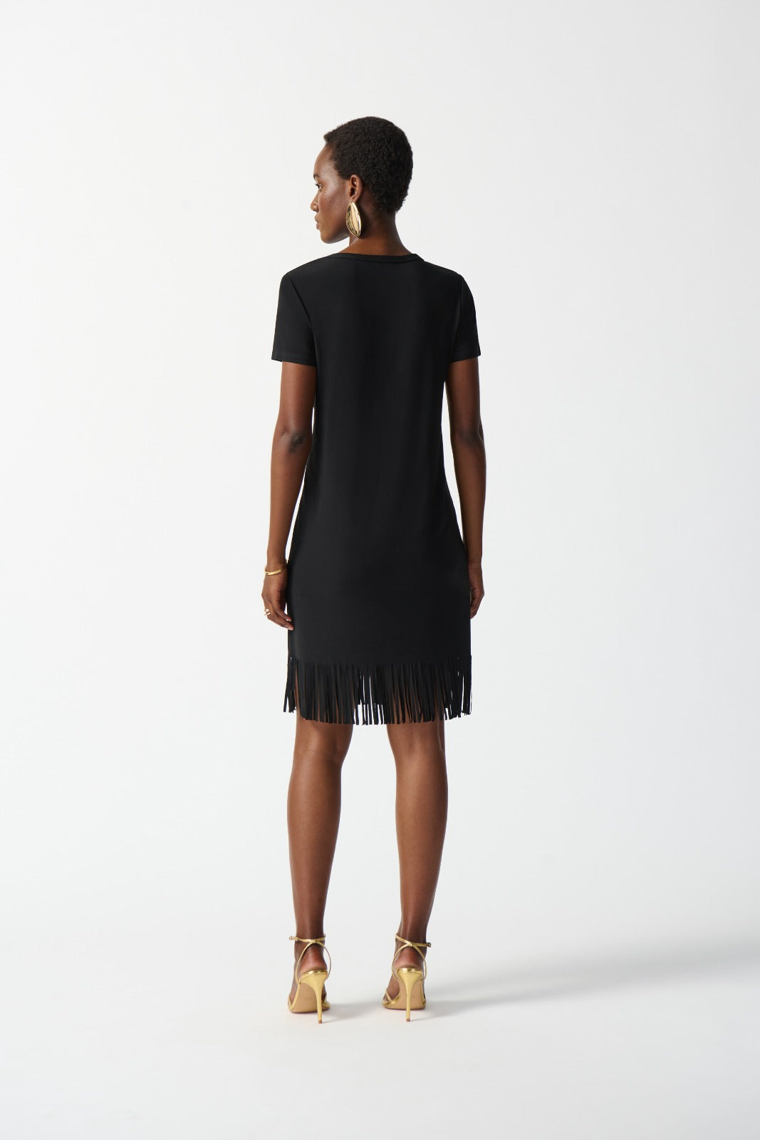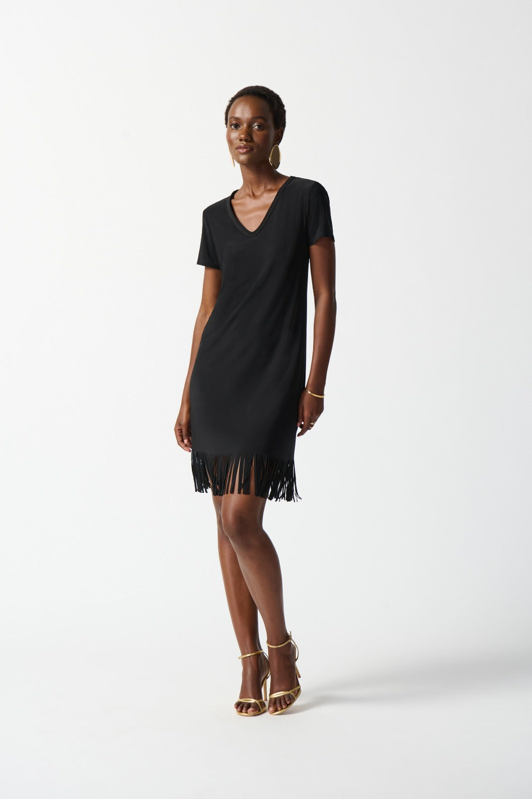Joseph Ribkoff Black Straight Dress with Fringes Style 242113
