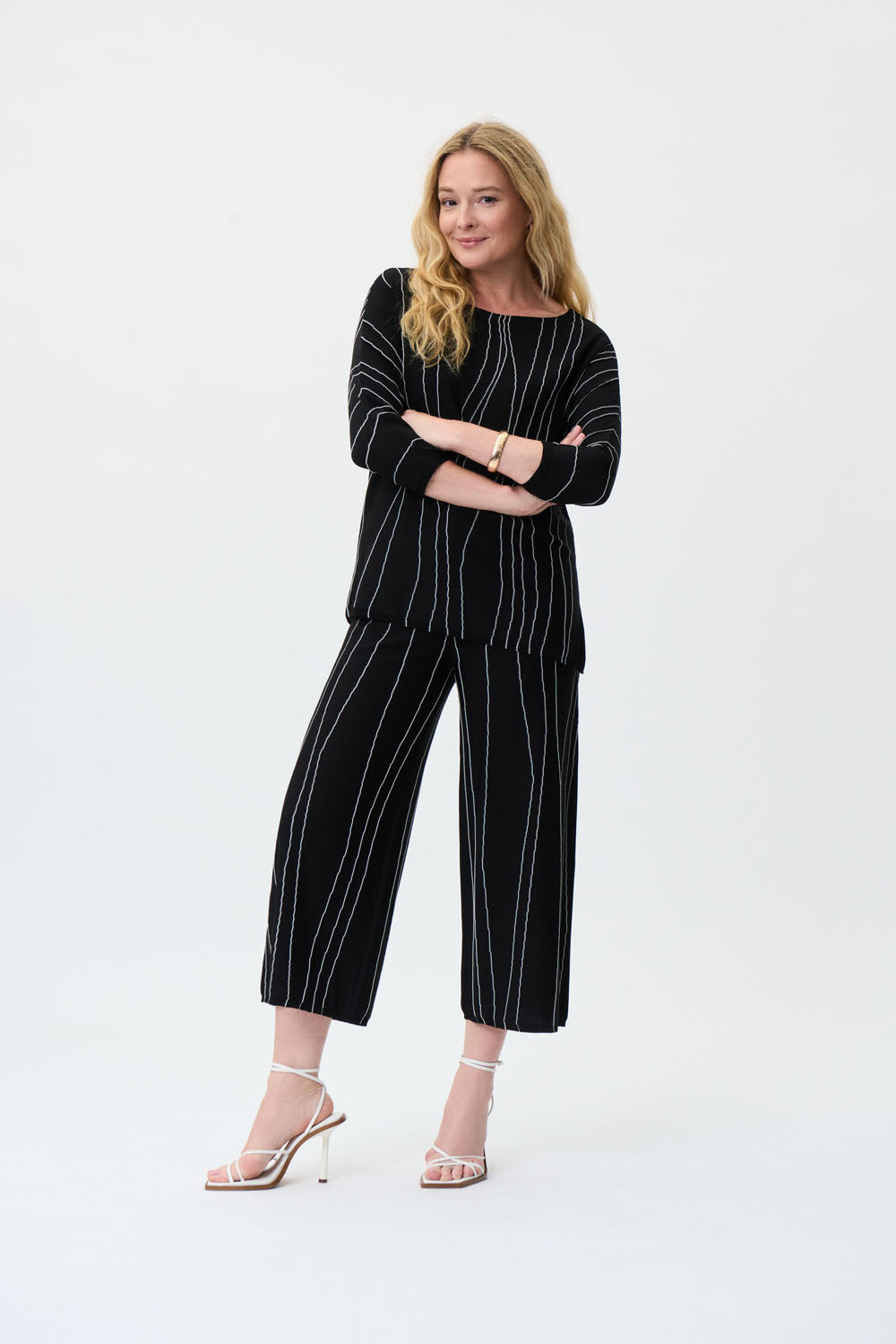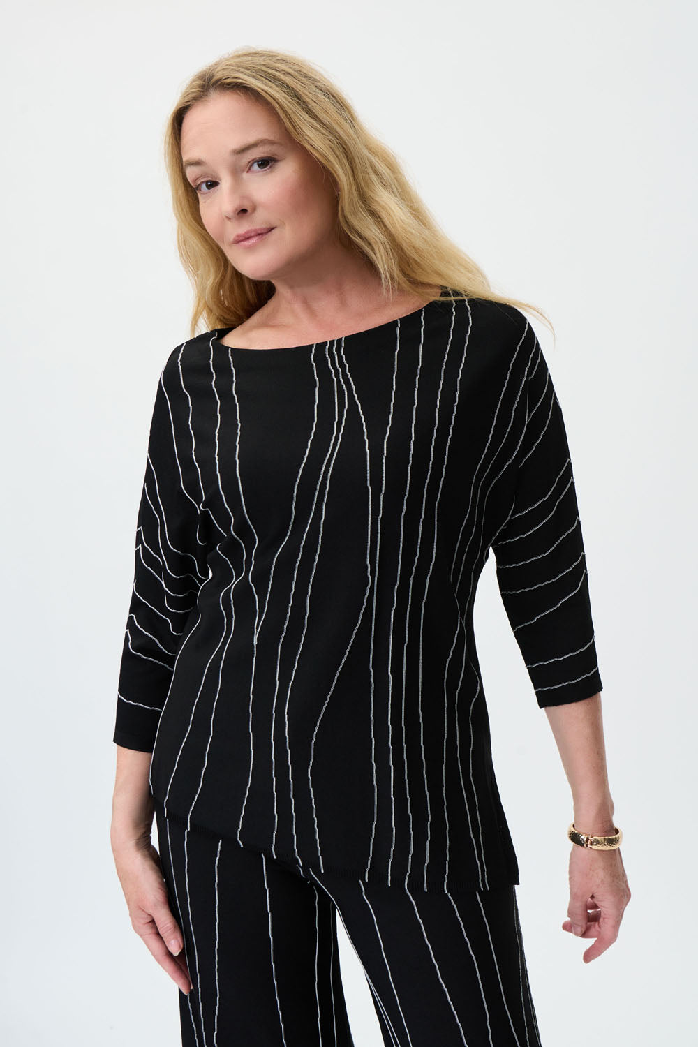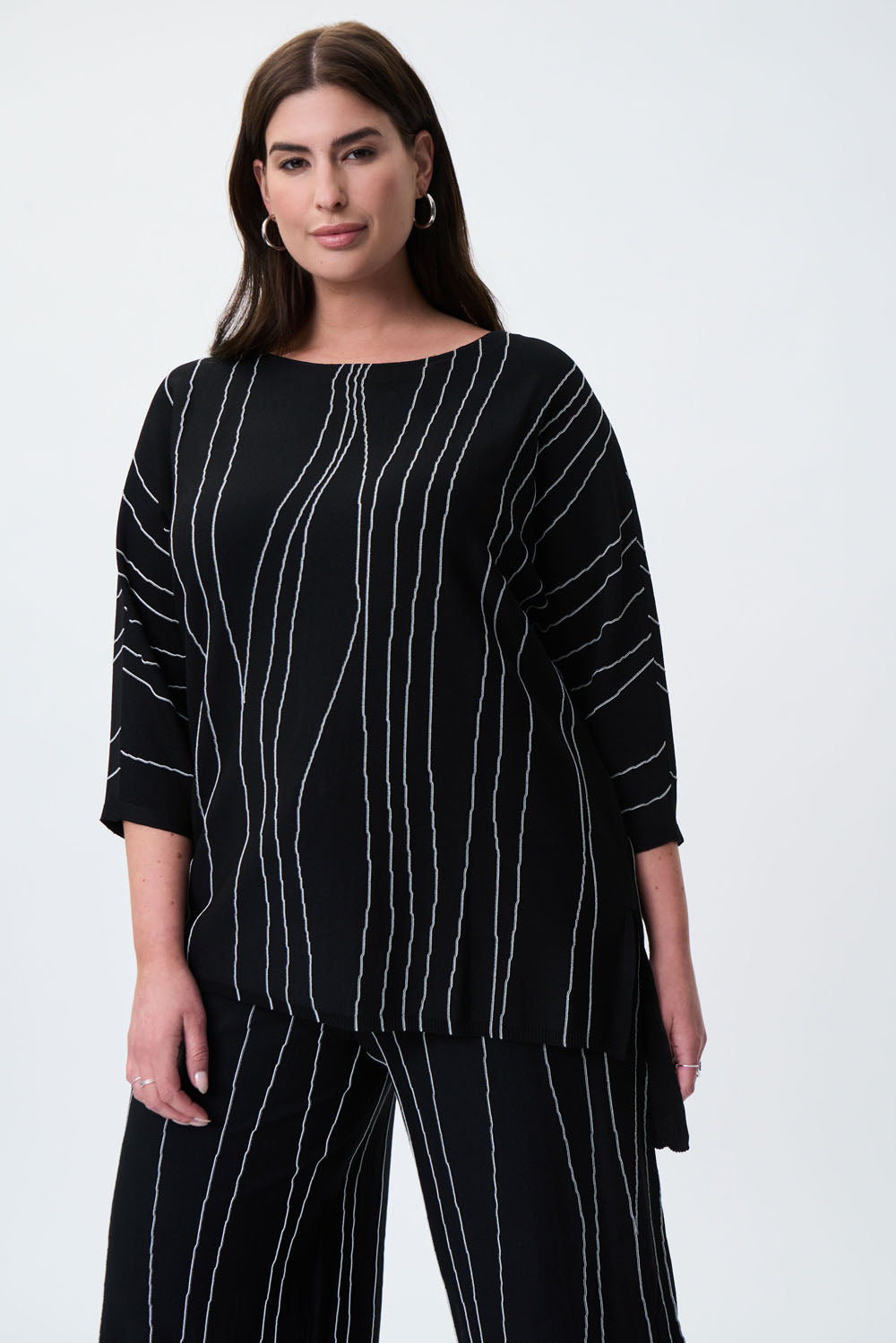 Joseph Ribkoff Black/Vanilla Asymmetrical Abstract Print Tunic Style 231936