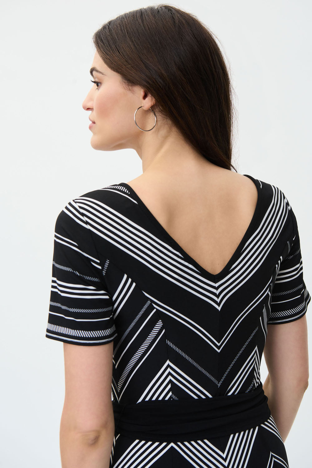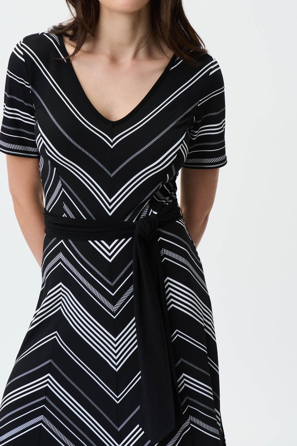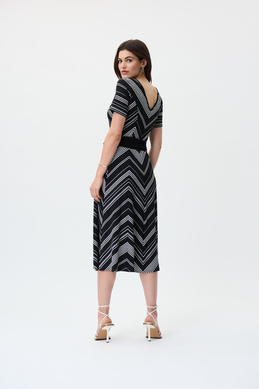 Joseph Ribkoff Black/Vanilla Fit And Flare Striped Midi Dress Style 231074