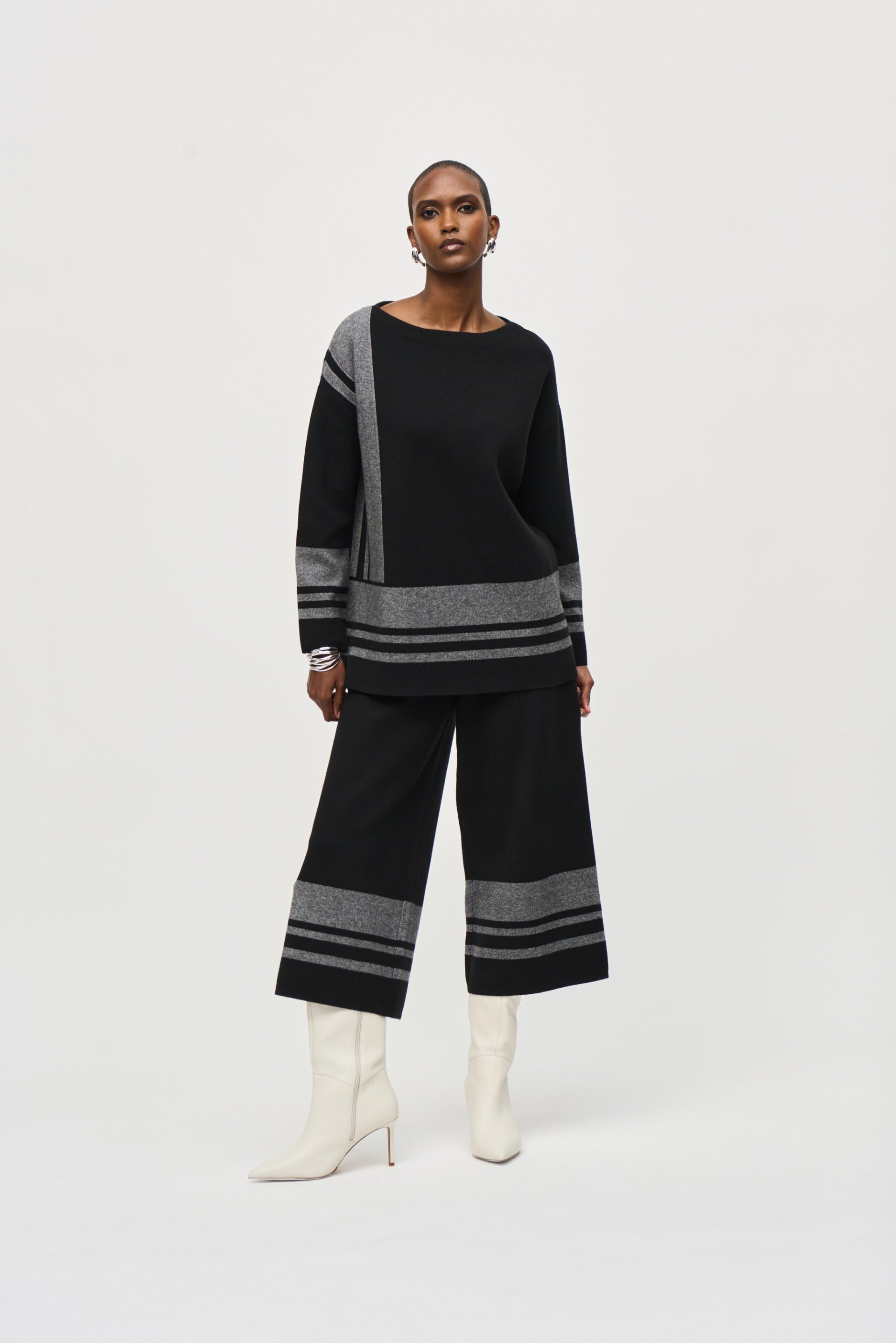 Joseph Ribkoff Black/Vanilla Jacquard Sweater Knit Culotte Pants Style 243950