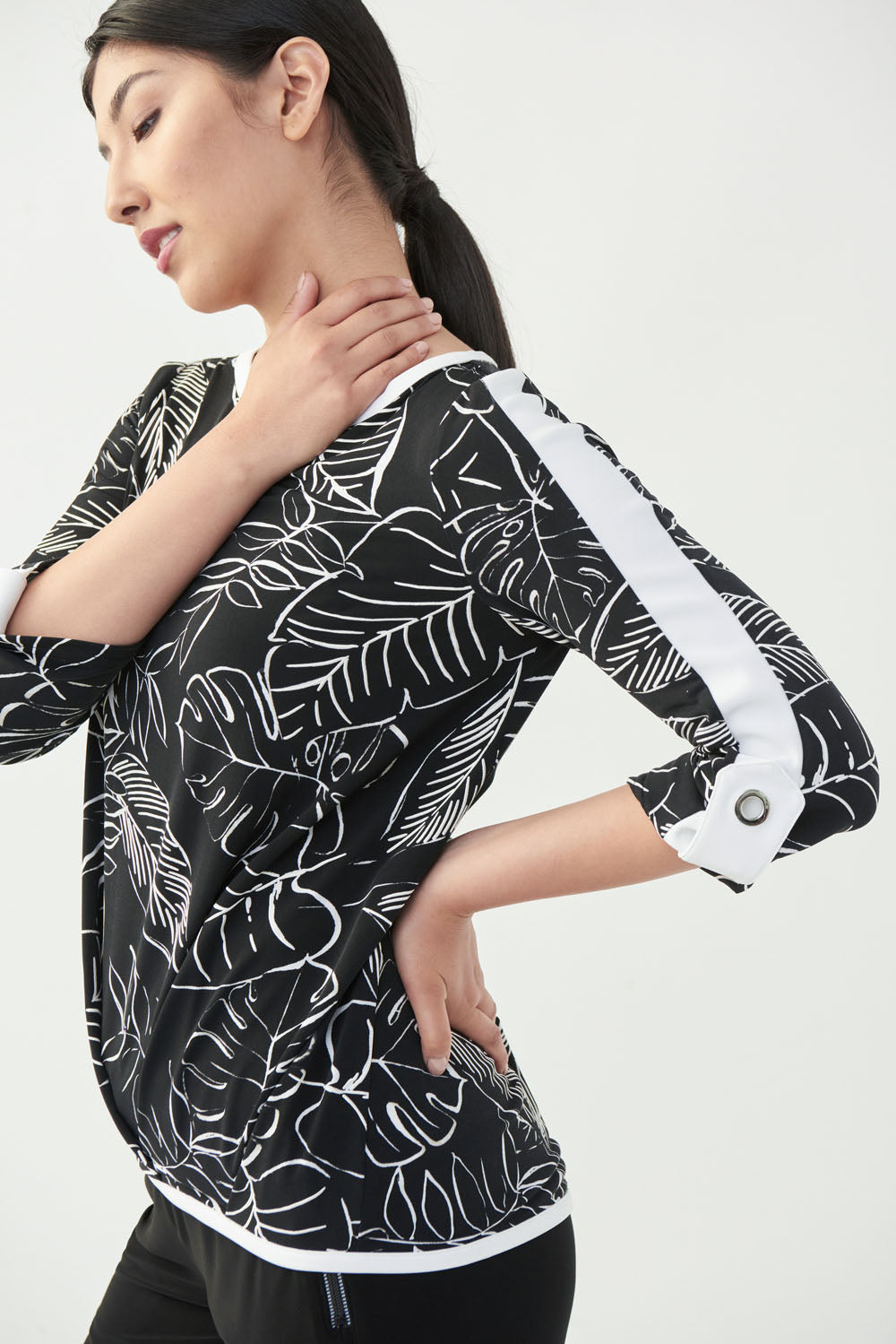 Joseph Ribkoff Black/Vanilla Palm Boat Neck Top Style 221034