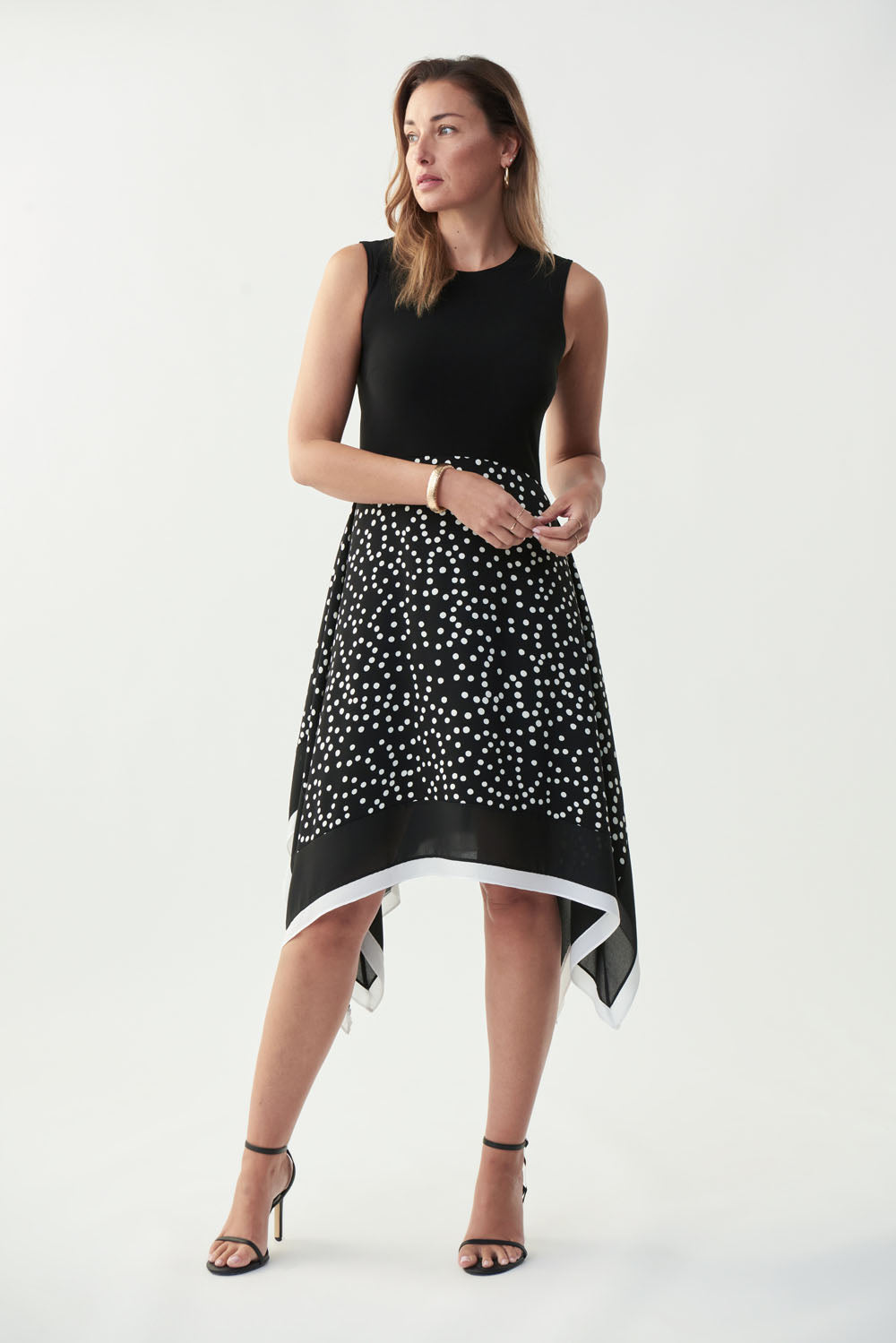 Joseph Ribkoff Black/Vanilla Polka Dot A-line Dress Style 221360 - Main Image