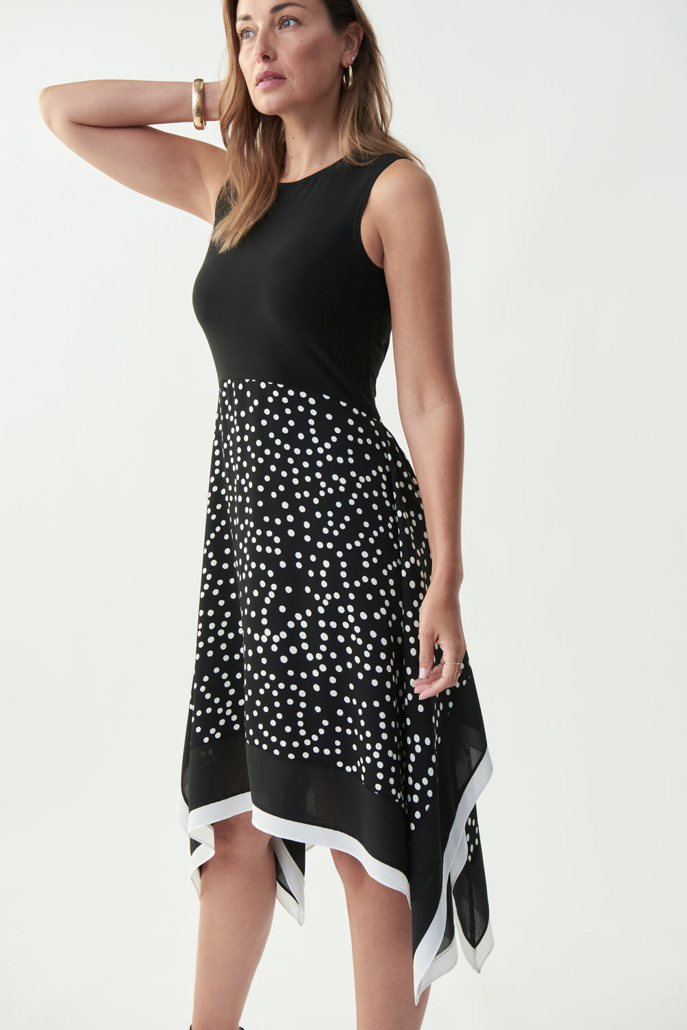 Joseph Ribkoff Black/Vanilla Polka Dot A-line Dress Style 221360