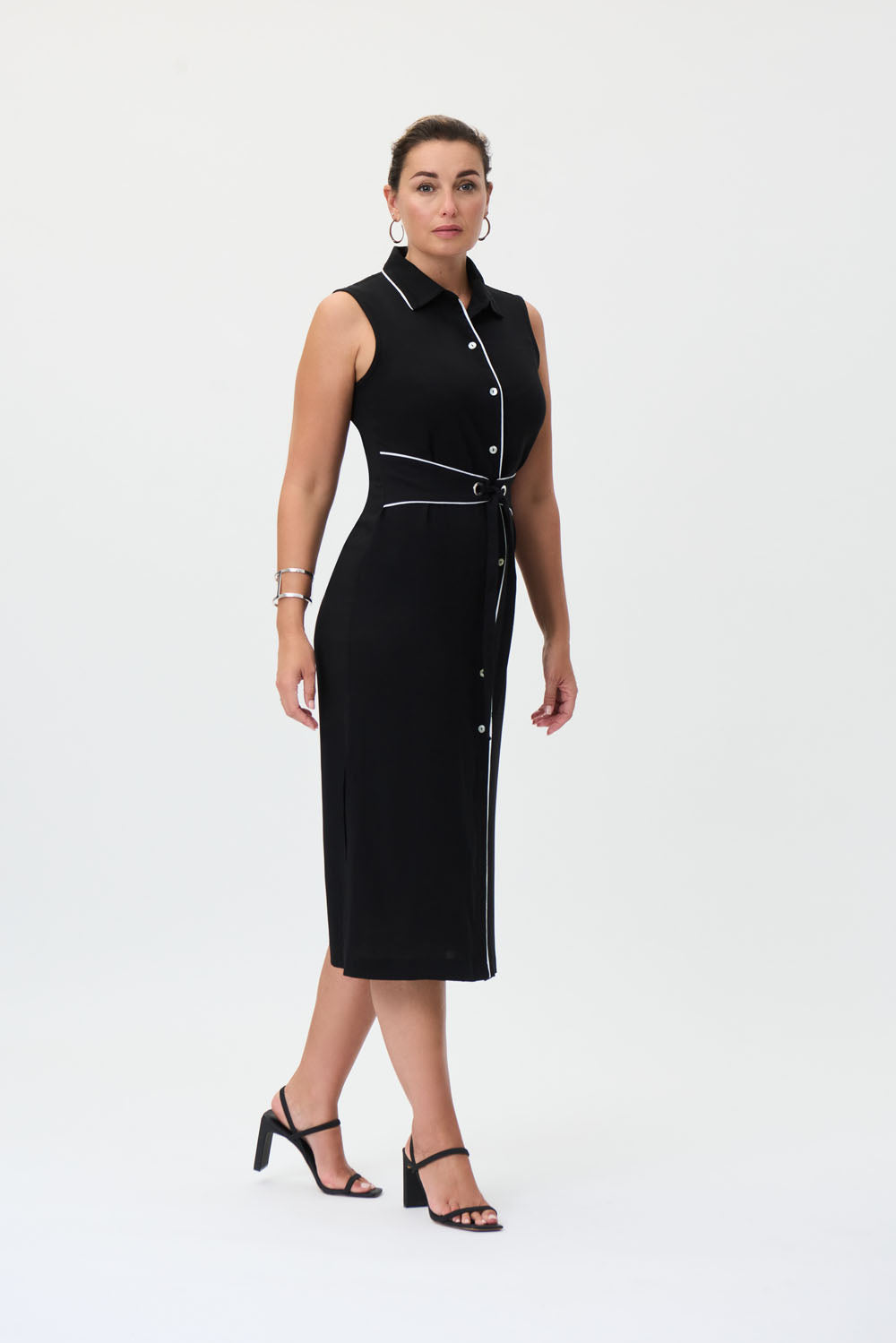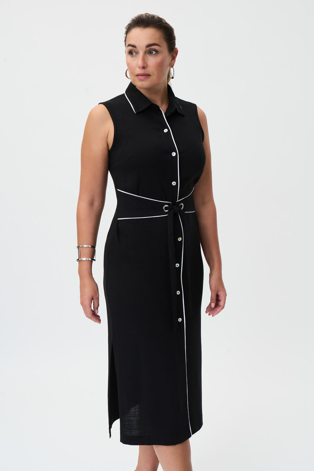 Joseph Ribkoff Black/Vanilla Sleeveless Belted Shirt Dress Style 232239
