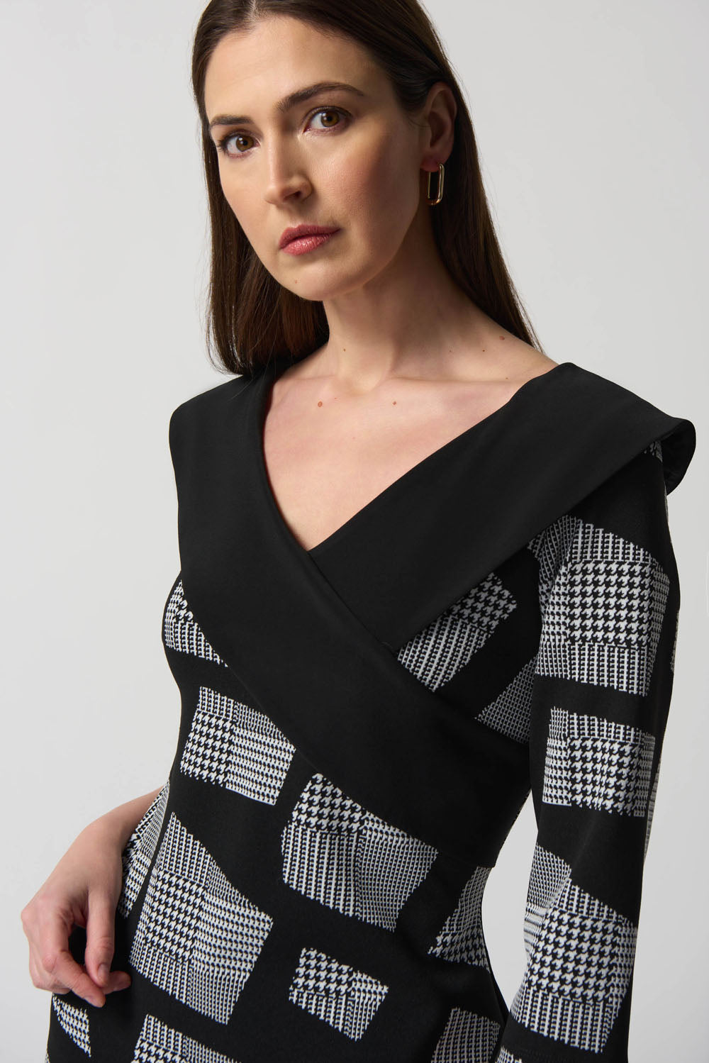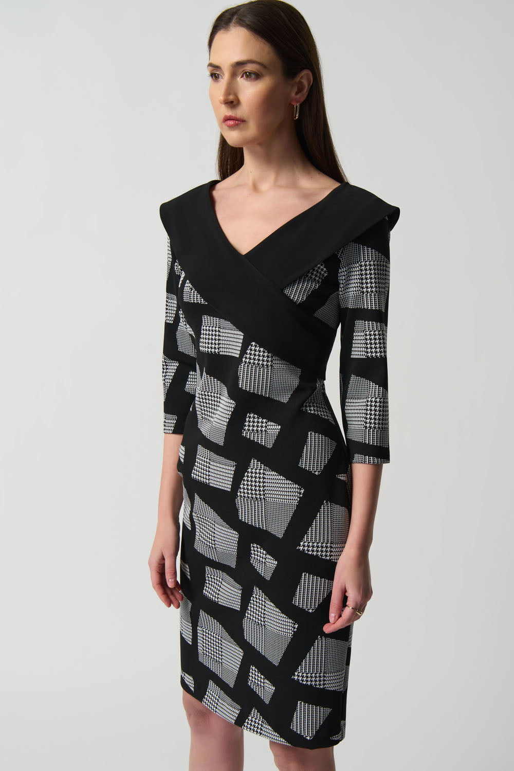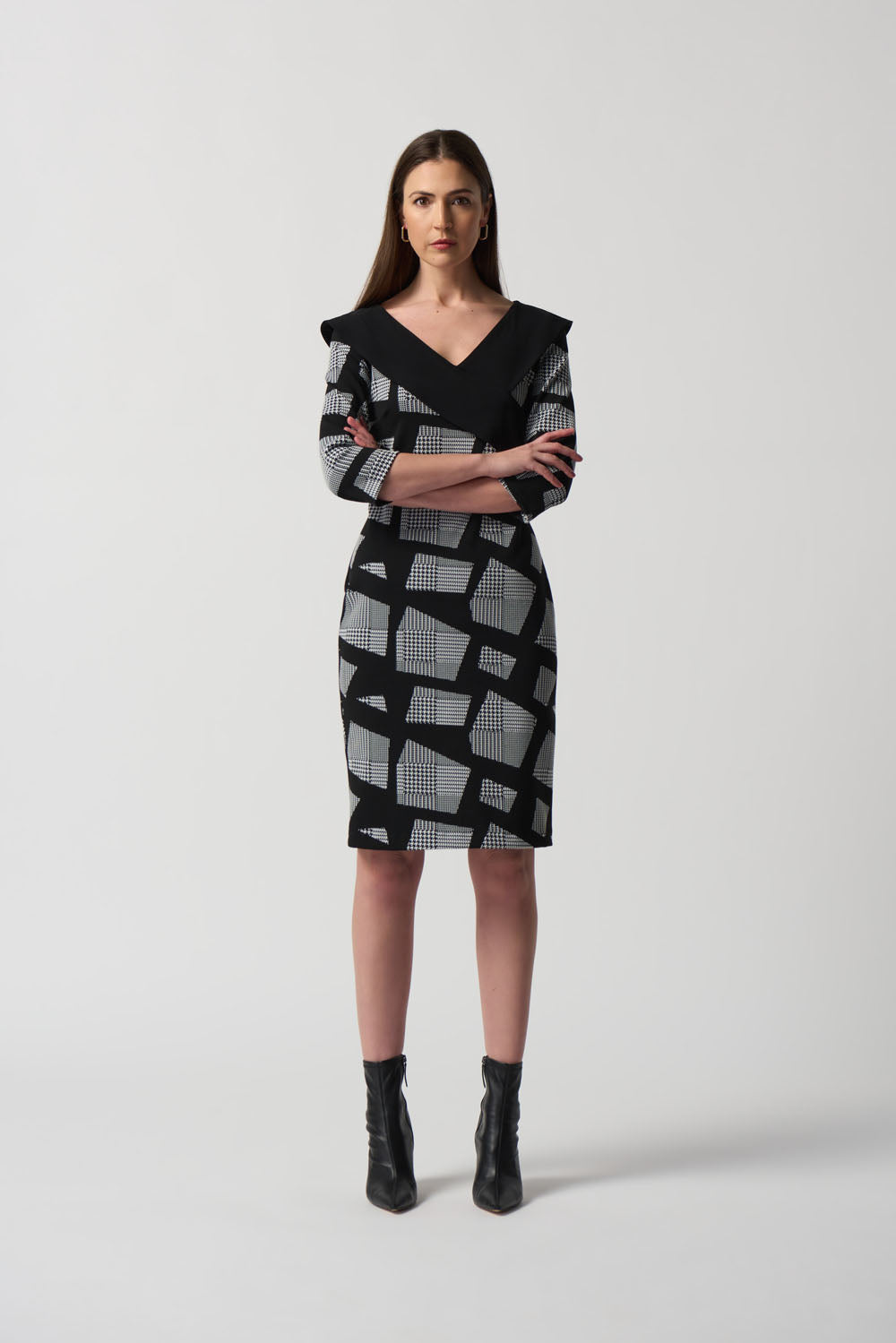 Joseph Ribkoff Black/White Houndstooth Sheath Dress Style 233295