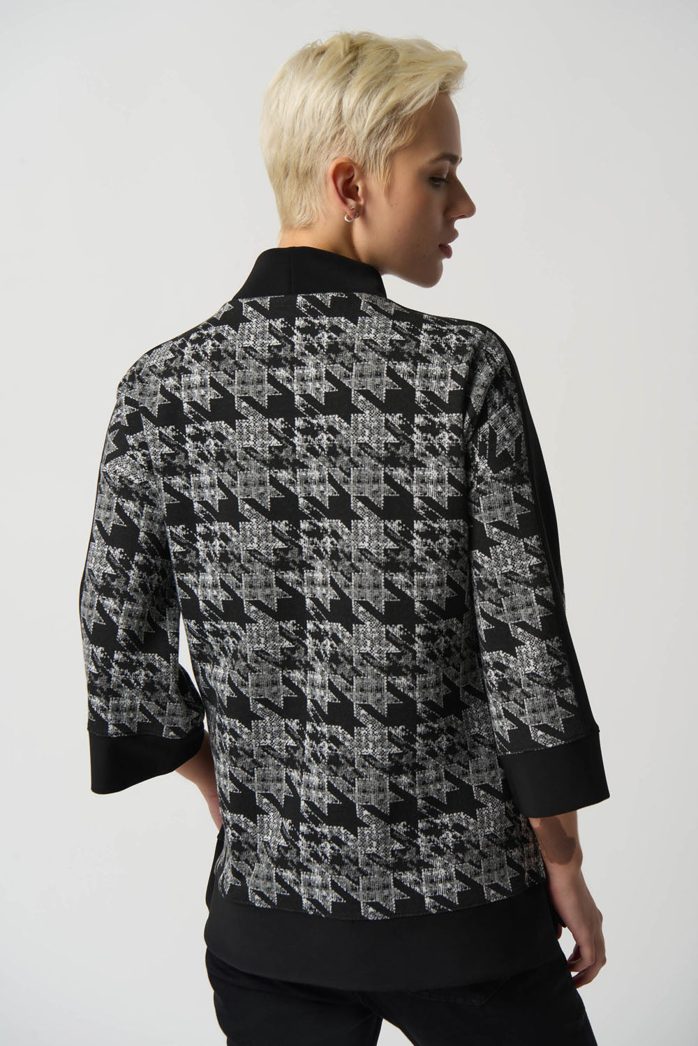 Details: Mock collar. Three-quarter dolman sleeves. Unlined. Houndstooth, Abstract.