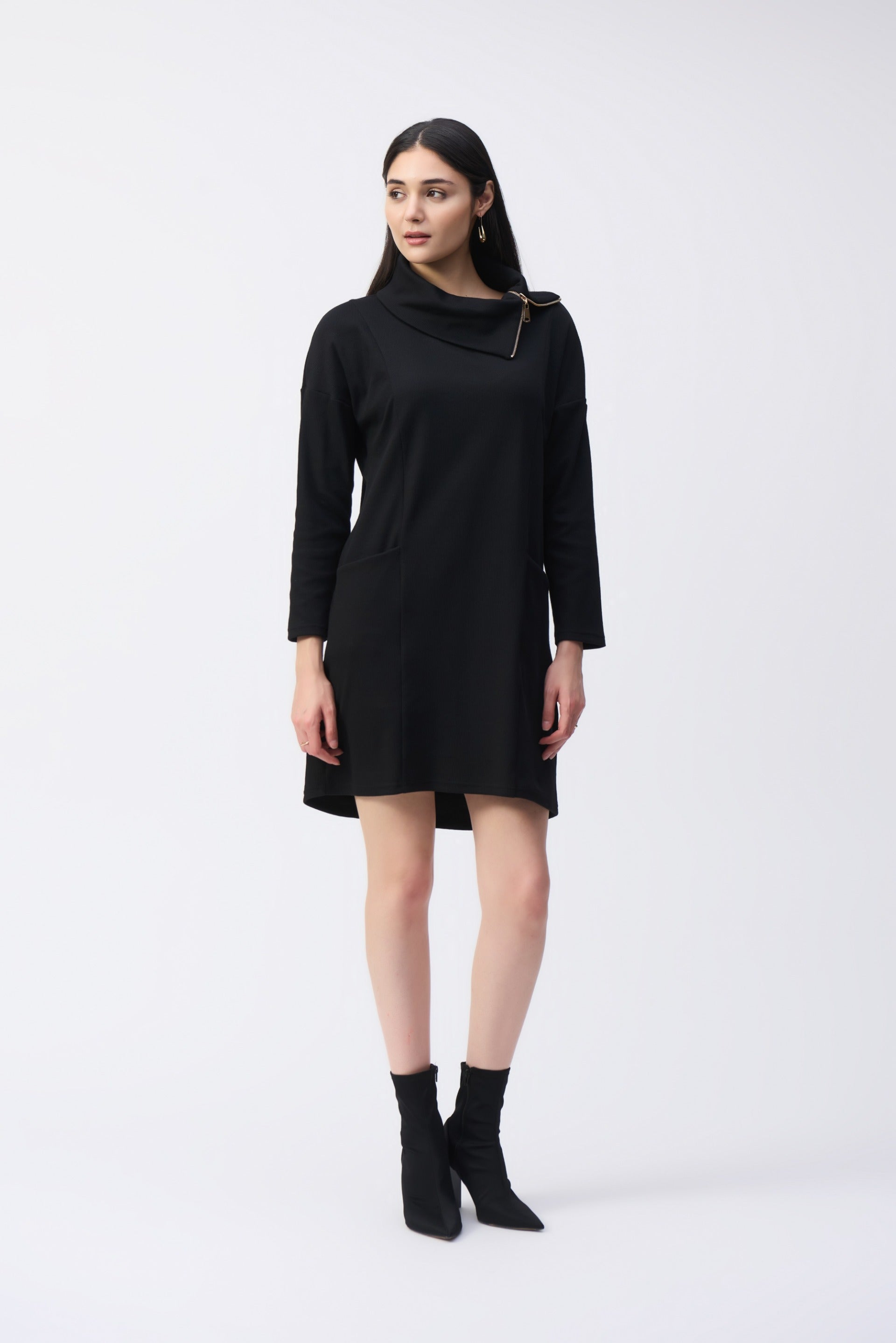 Joseph Ribkoff Black Zipper Collar Cocoon Dress Style 243207