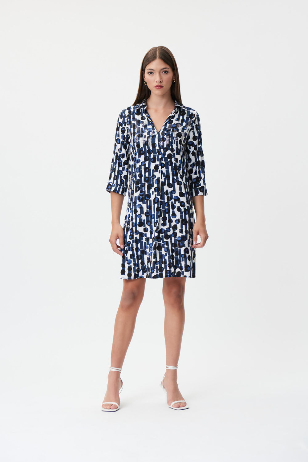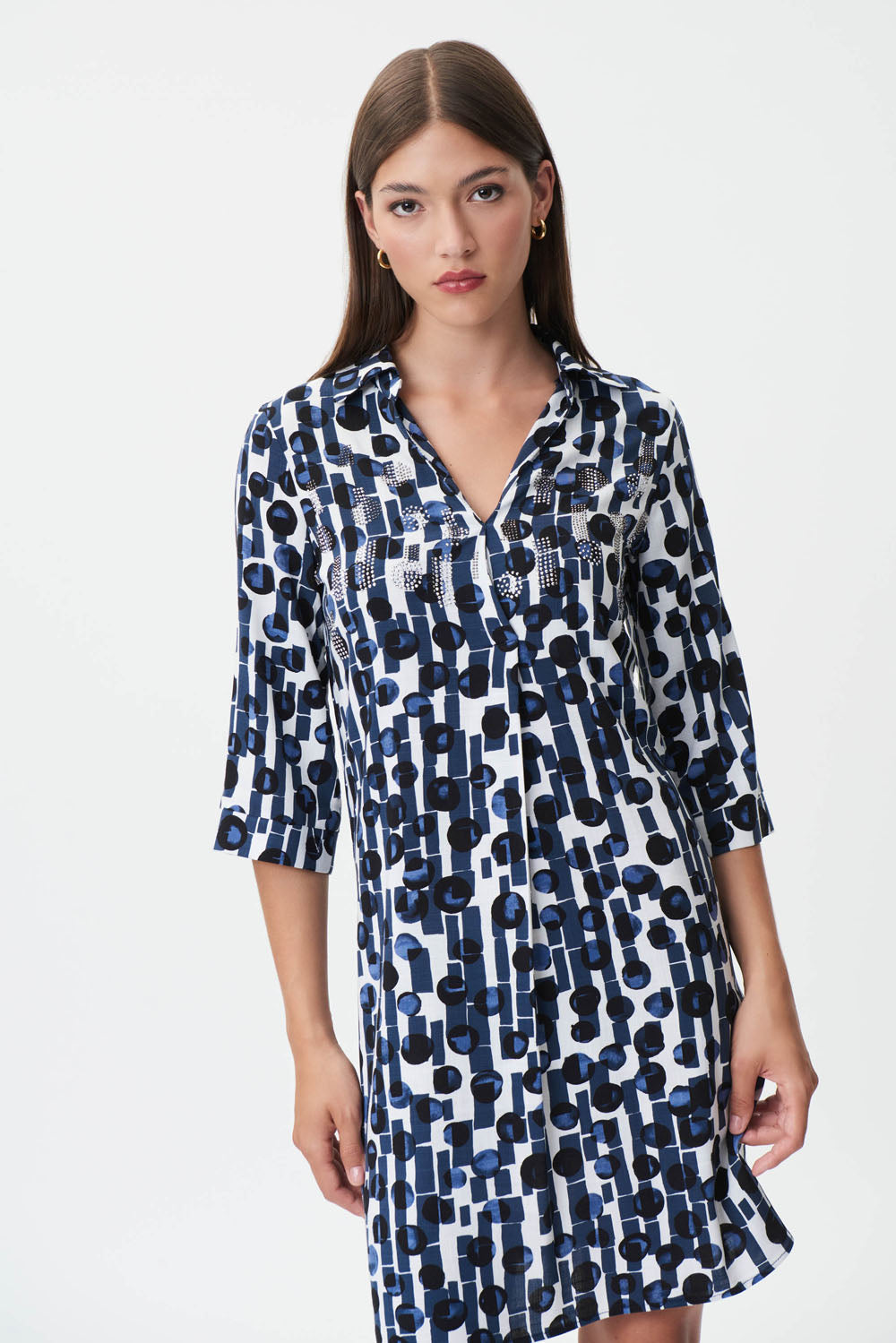 Joseph Ribkoff Blue/Vanilla Dot Print Dress Style 232122