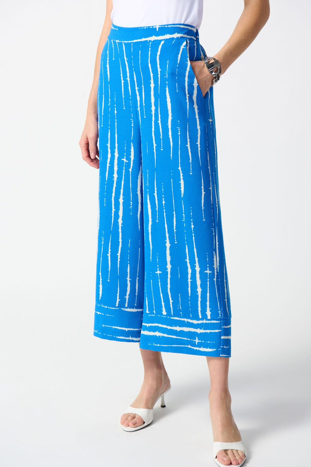 Joseph Ribkoff Blue/White Abstract Print Culotte Pants Style 242047