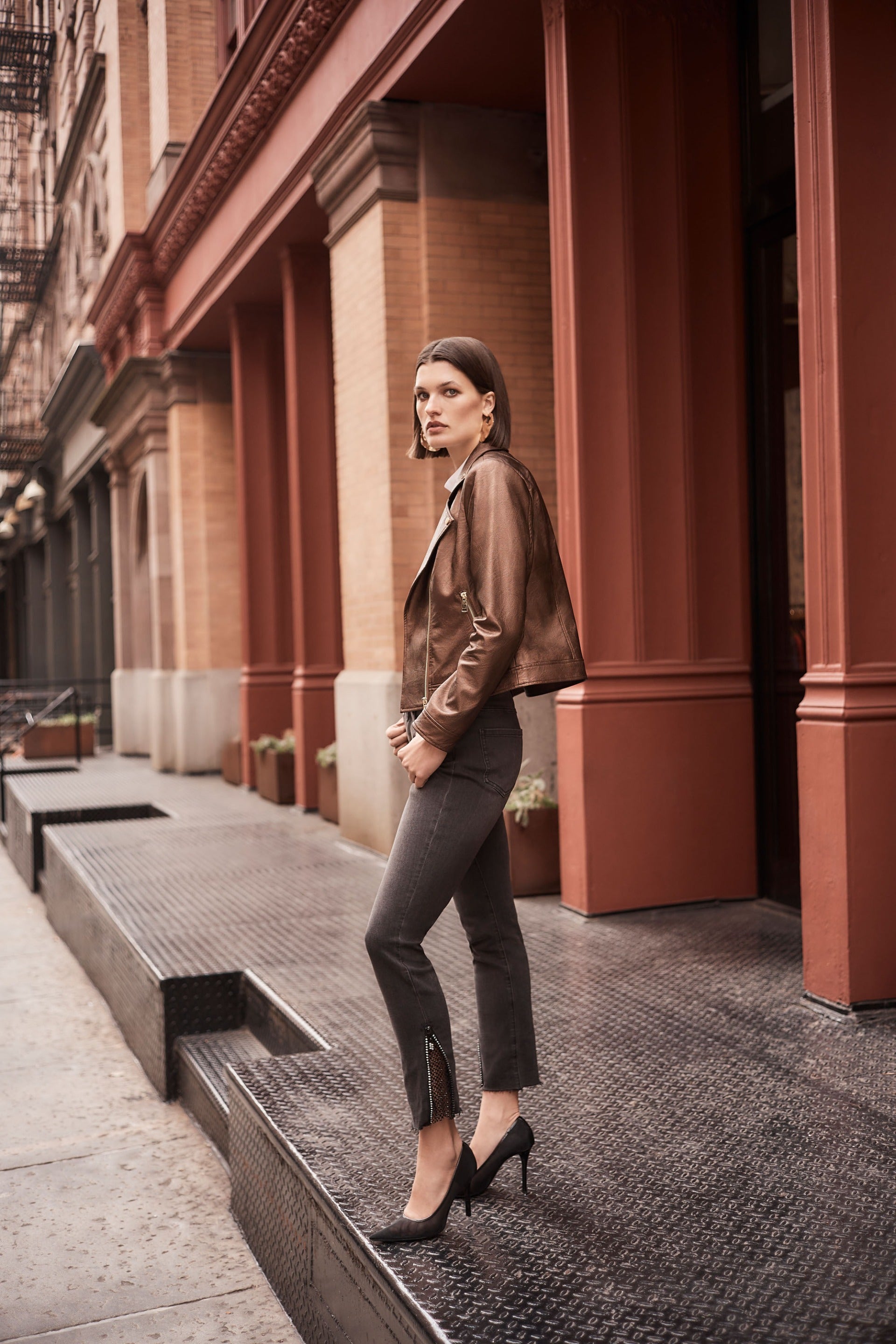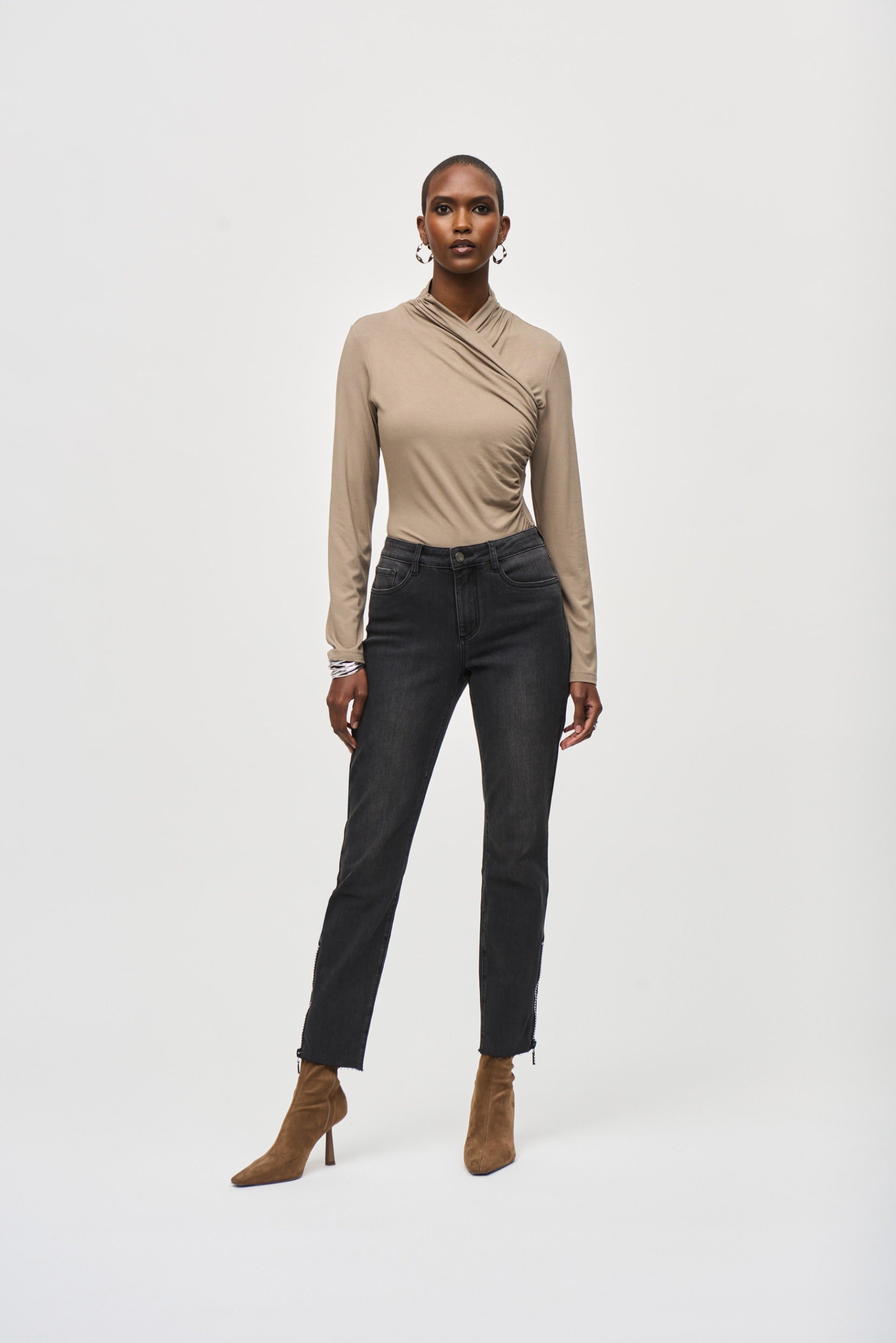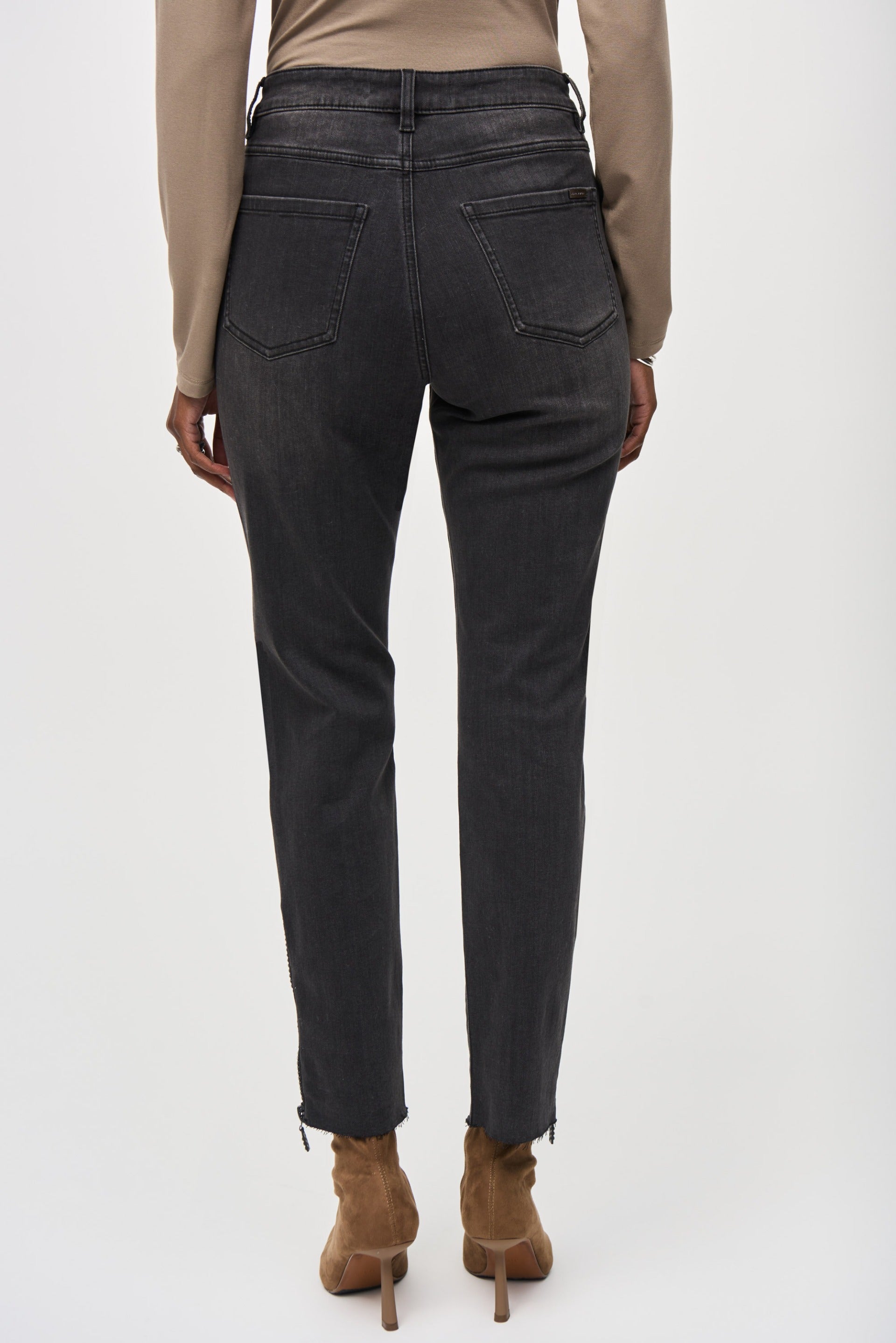 Joseph Ribkoff Charcoal Grey Denim Pants With Rhinestones and Mesh Detail Style 243914