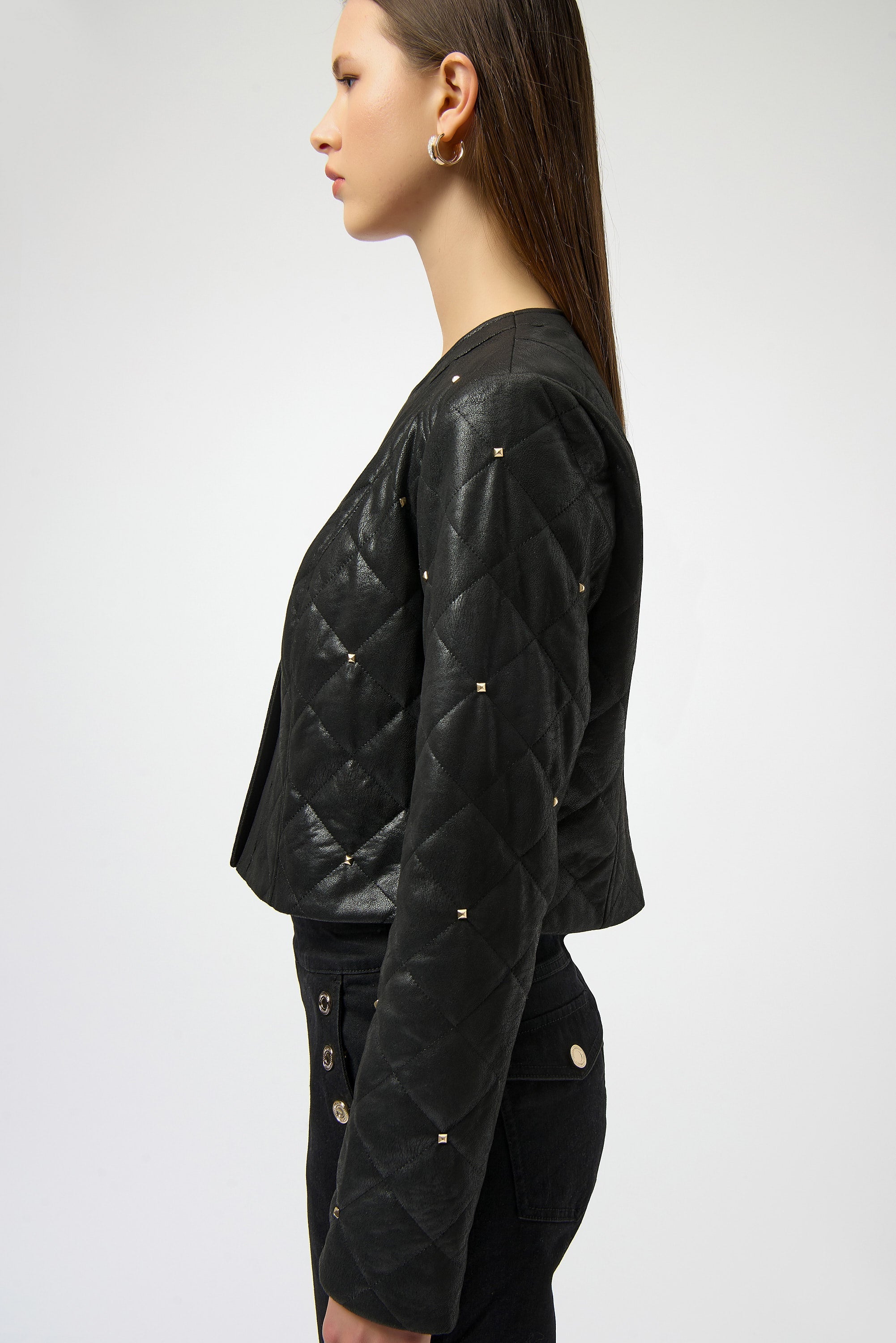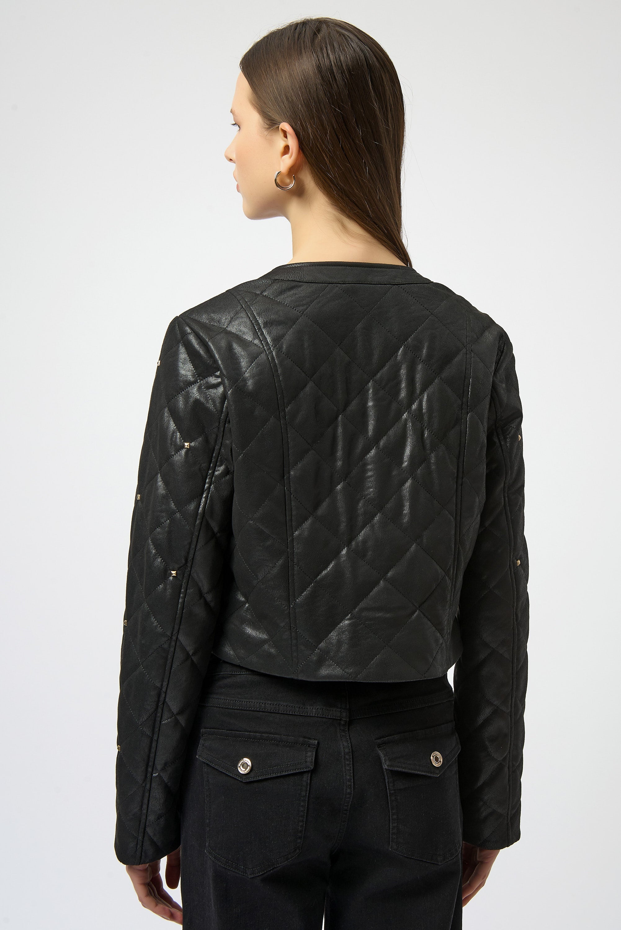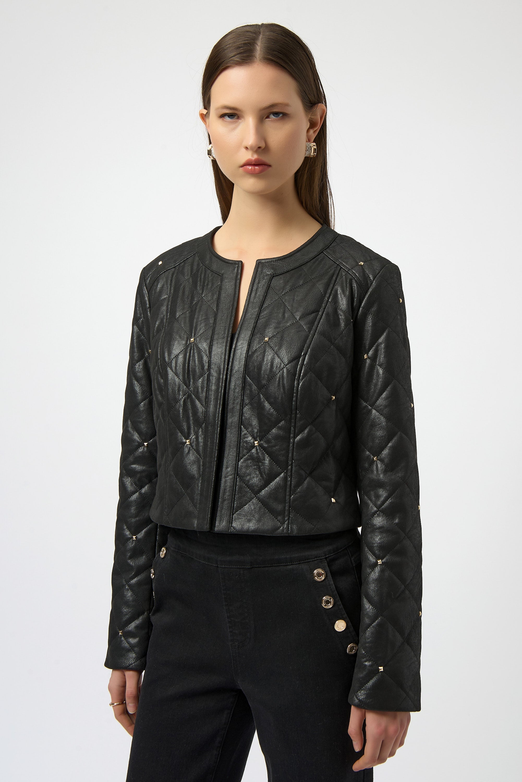Joseph Ribkoff Foiled Faux Suede Diamond Quilt Studded Jacket Style 254929