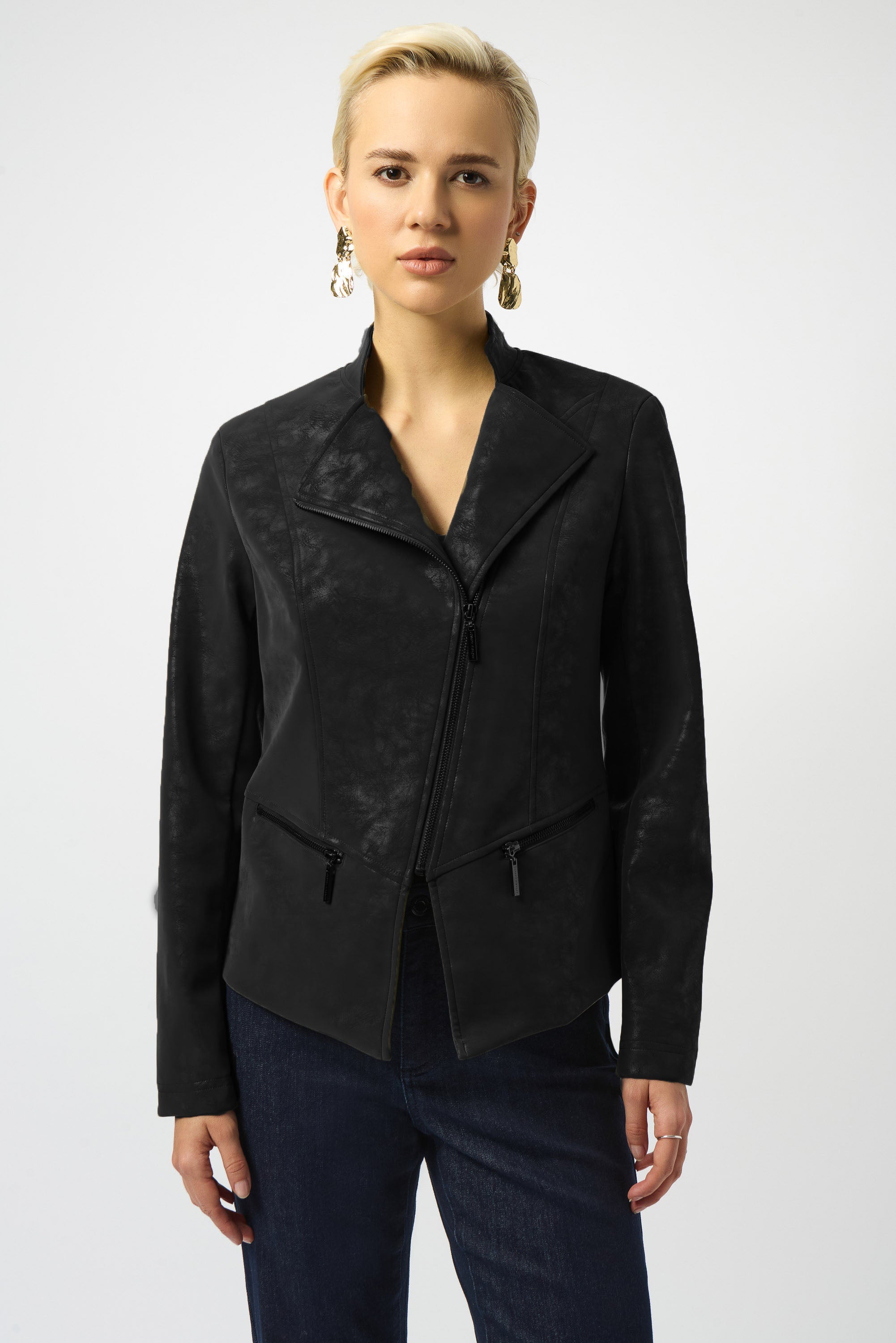 Joseph Ribkoff Foiled Faux Suede Fitted Moto Jacket Style 253915