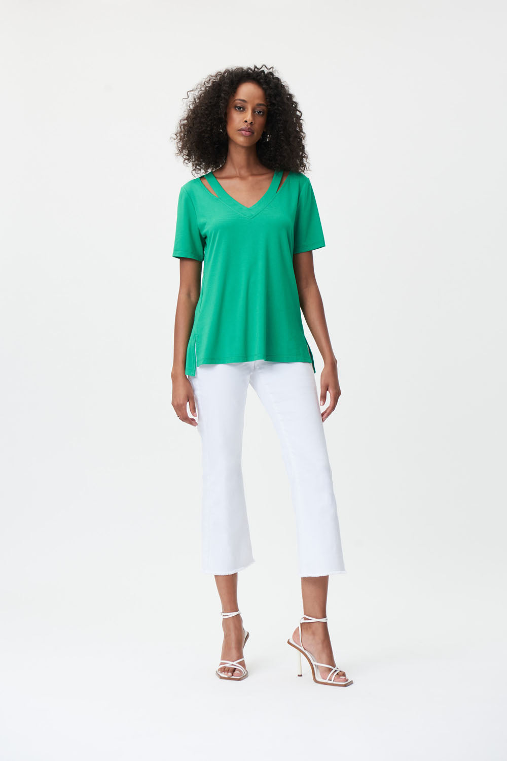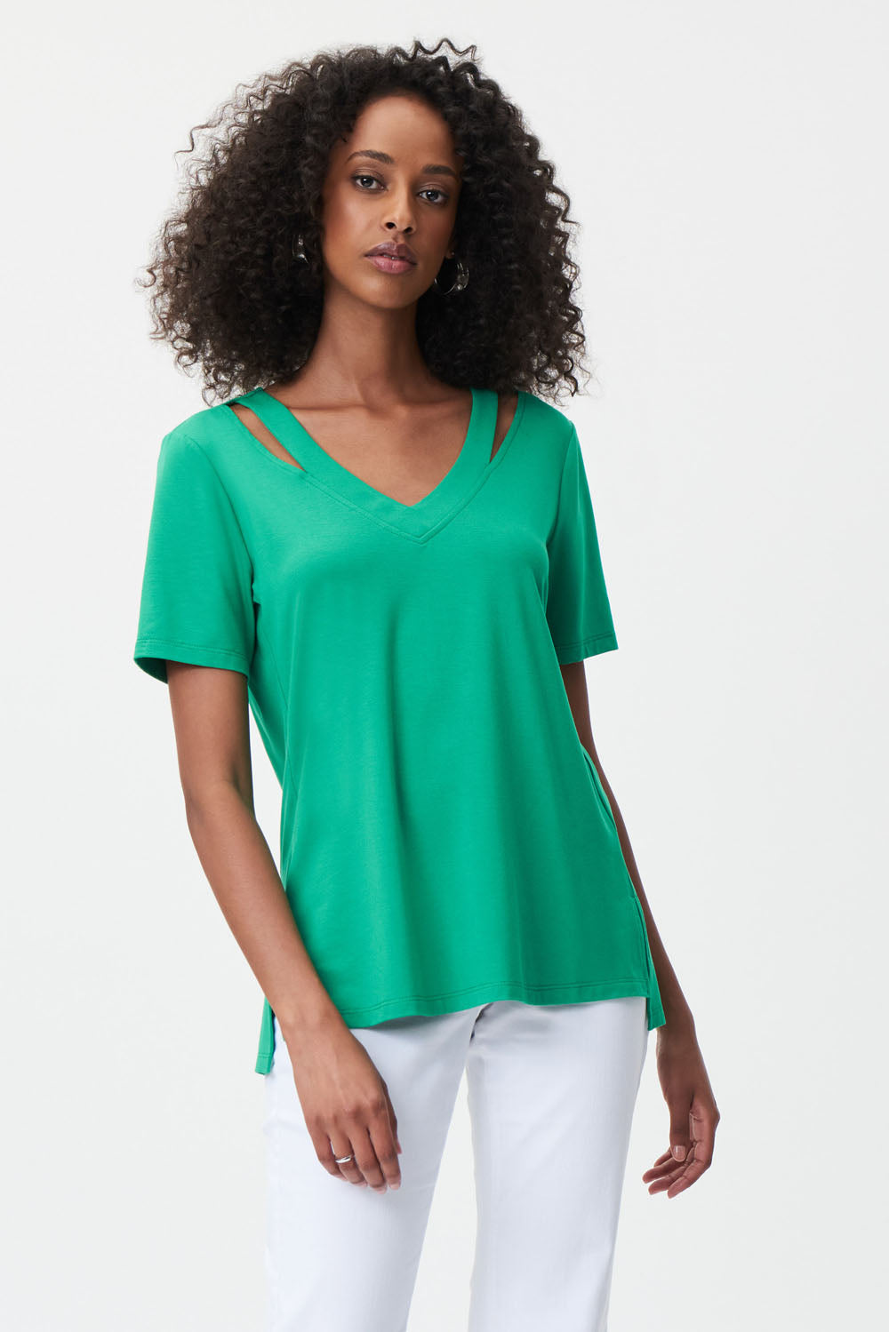 Joseph Ribkoff Foliage Short-Sleeve V-Neck Top Style 232219