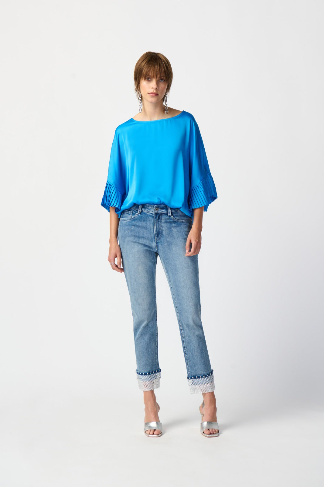 Joseph Ribkoff French Blue Boxy Top with Ruffle Sleeves Style 241182